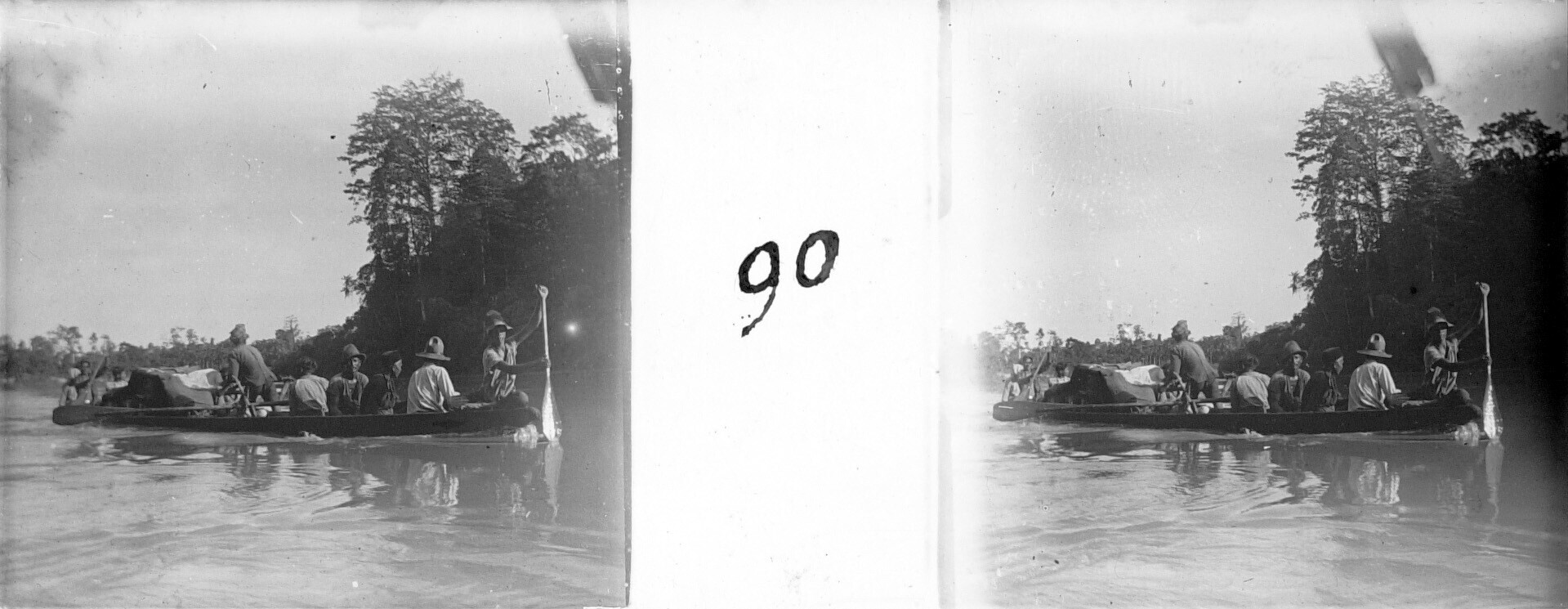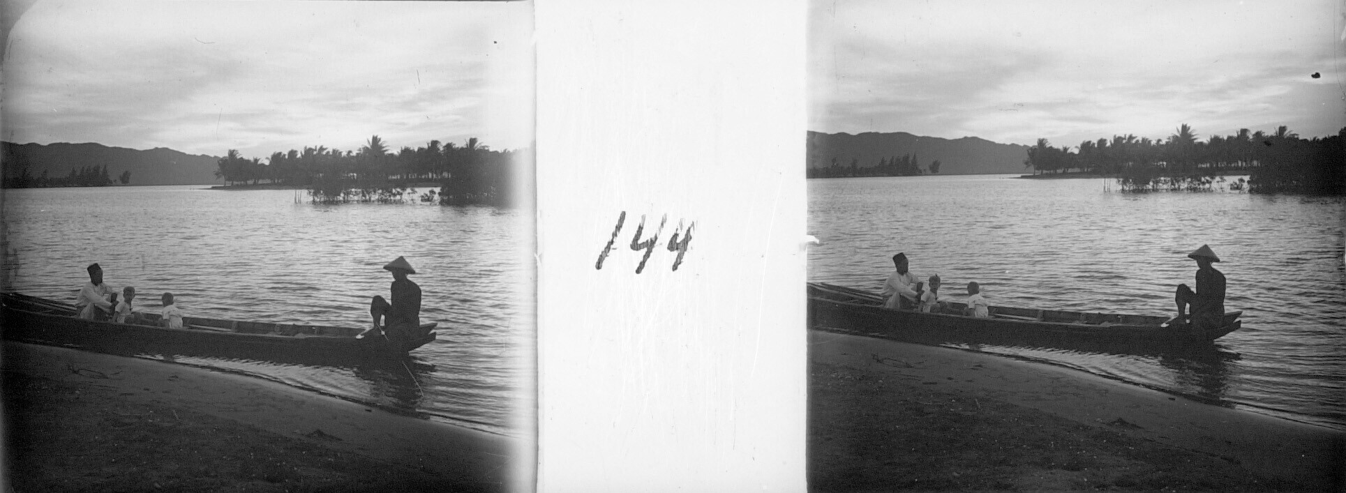 De broers Henk en Hans Japing in een prauw, tijdens ...