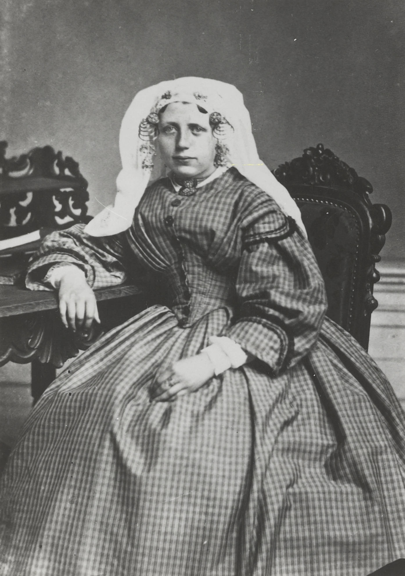 Vrouw in streekdracht uit Rozenburg, circa 1860 (zwa...