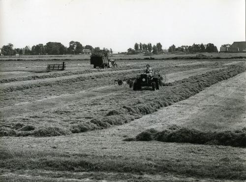 Foto in zwart-wit van de maisoogst door Johan Wittev...
