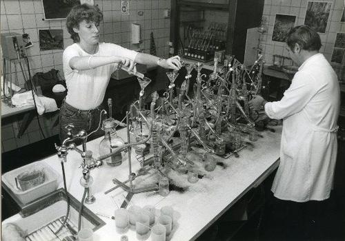 Foto in zwart-wit van het opzetten van een kuilbult ...