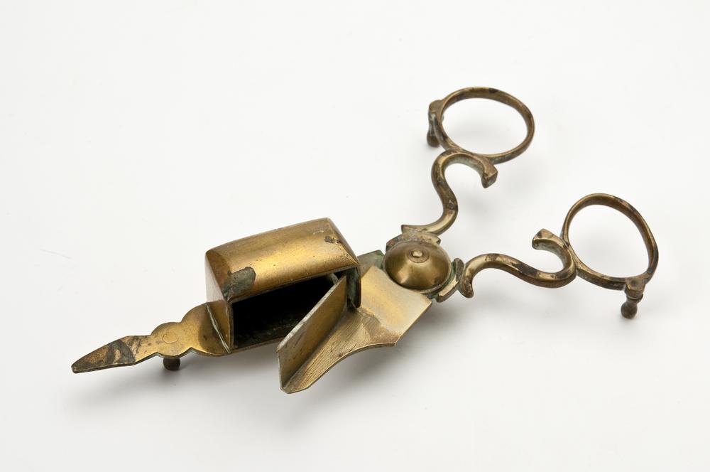 Flesjeswaterpas van koper met glazen flesjes op een ...