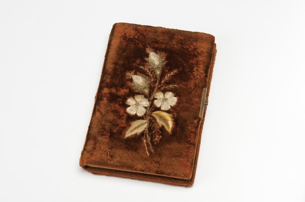 Stalenboekje van J.P. Weyers met stalen van beige ru...
