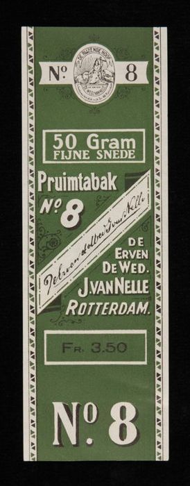 Groen label VAN NELLE PRUIMTABAK, No. 8, 50 gram, fr...
