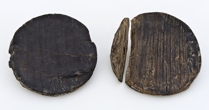 Ronde houten deksel en bodem van spanen doos