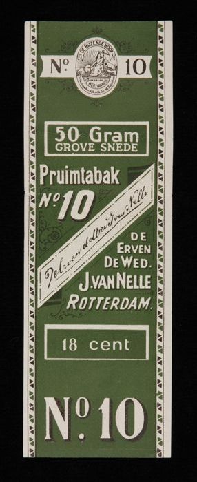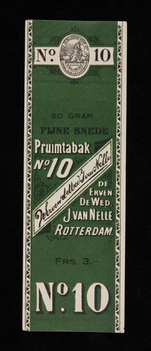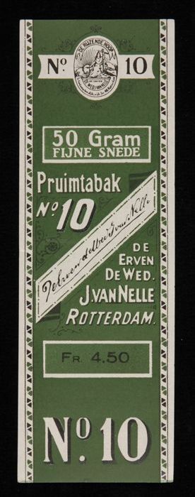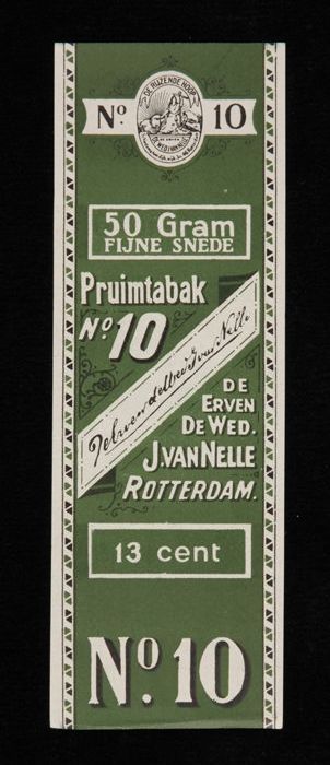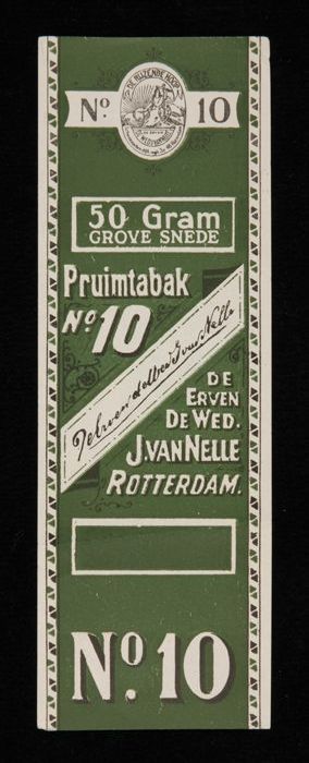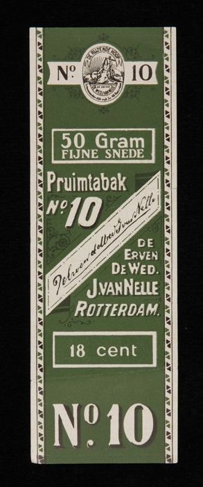 Groen label VAN NELLE PRUIMTABAK, No. 10, 50 gram, 18¢