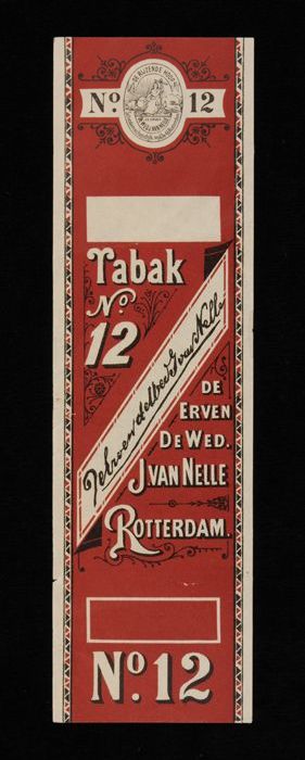 Twee donkerrode labels VAN NELLE TABAK, No. 12, fr. ...