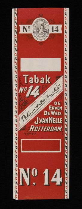 Twee donkerrode labels VAN NELLE TABAK, No. 14, fr. ...
