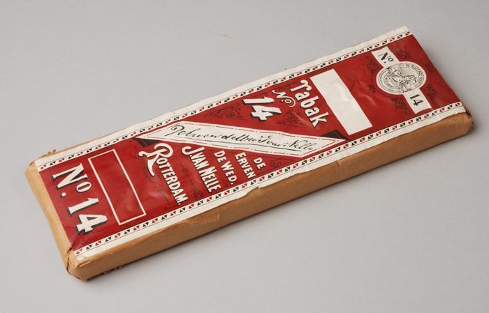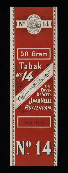 Donkerrood label VAN NELLE TABAK, No. 14, 50 gram, 30¢
