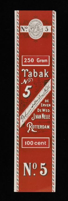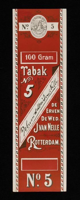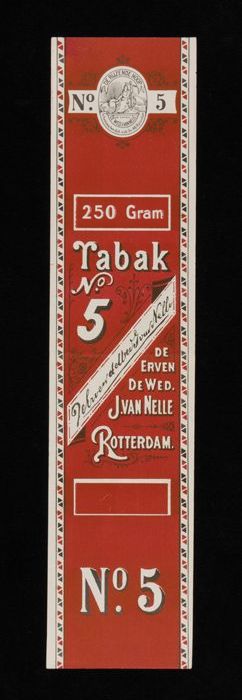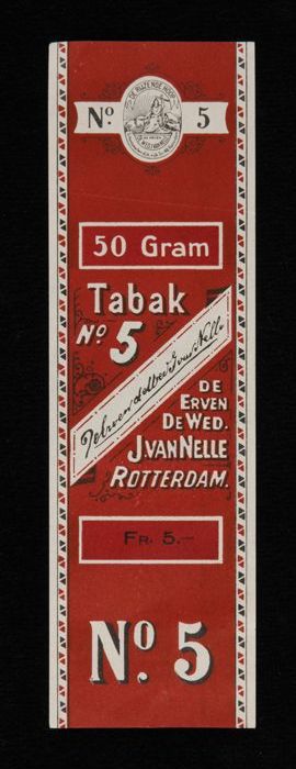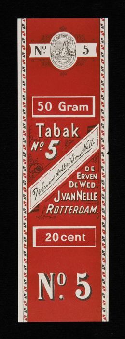 Donkerrood label VAN NELLE TABAK, No. 5, 50 gram, 20¢