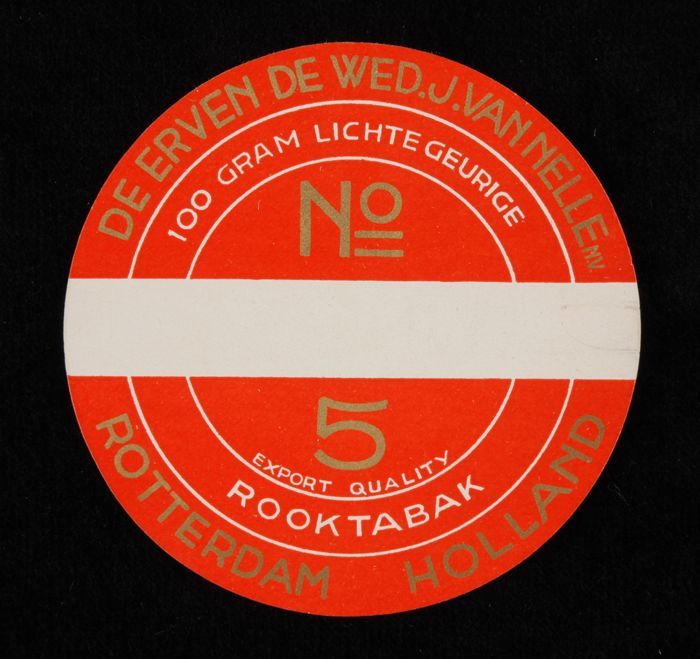 Rood, rond label VAN NELLE TABAK, No. 5, 100 gram, 60¢