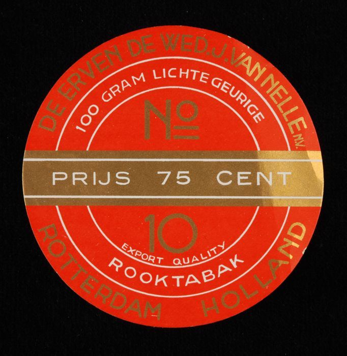 Rood, rond label VAN NELLE TABAK, No. 10, 100 gram, 75¢
