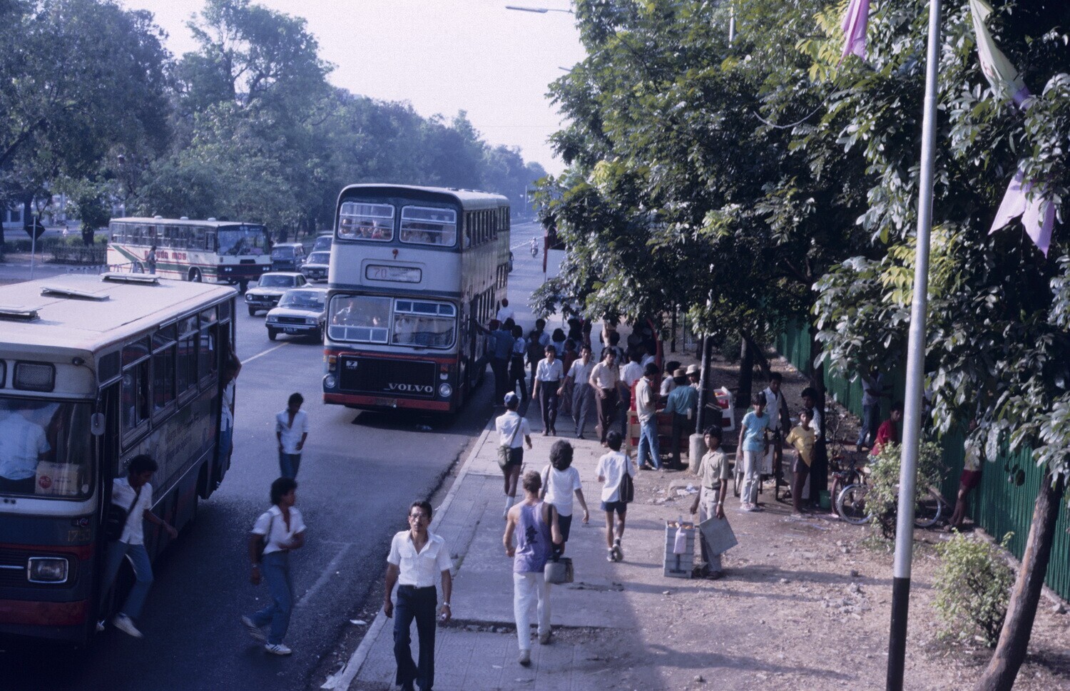 Bushalte aan de Jalan Mèrdeka Barat met resp. een ge...