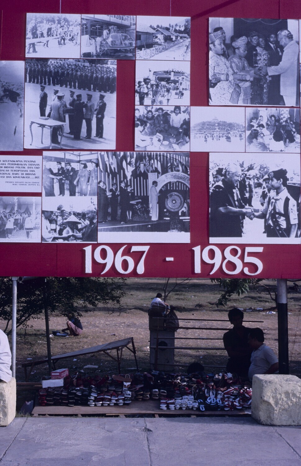Bord met foto's over de geschiedenis van de Indonesi...