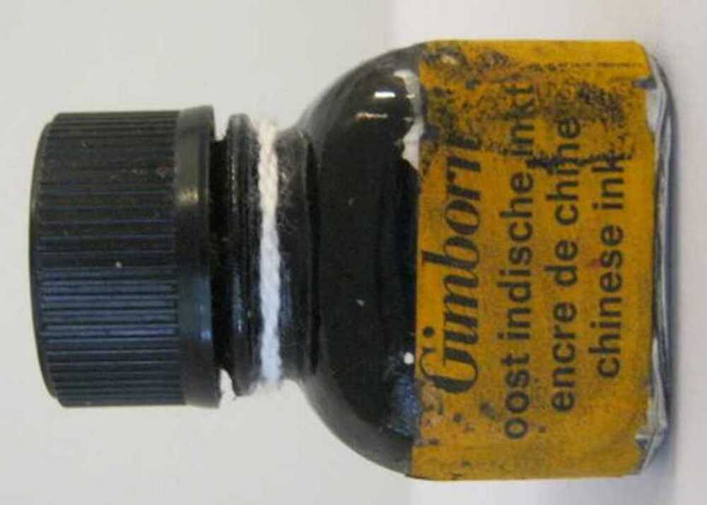 Fles van glas met zwarte schroefdop gevuld met zwart...