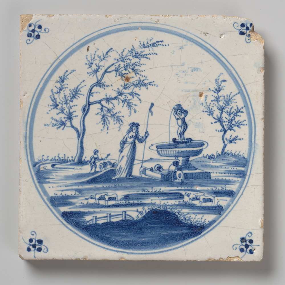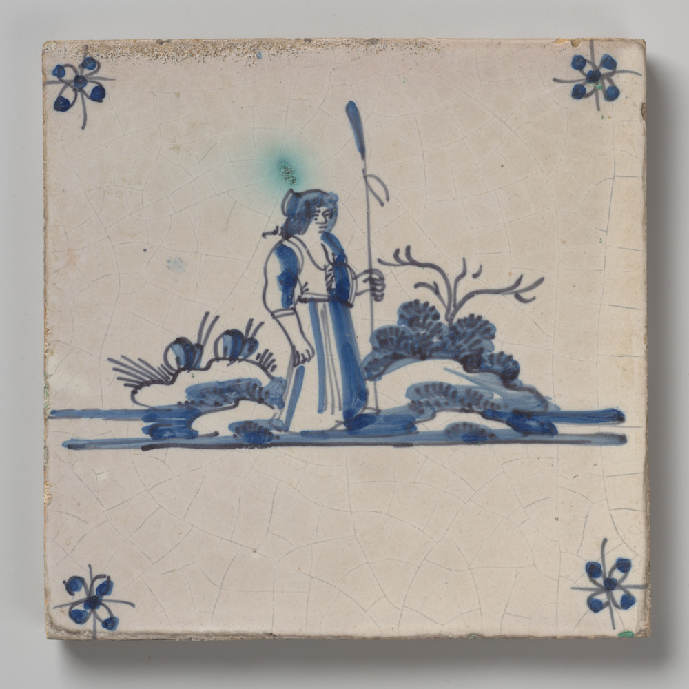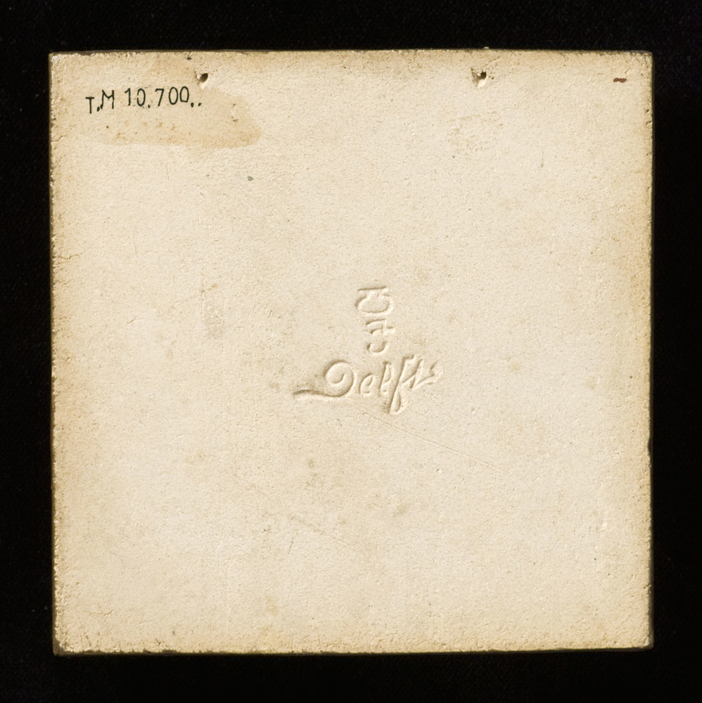 tegel van aardewerk met tinglazuur, voorstellende: h...