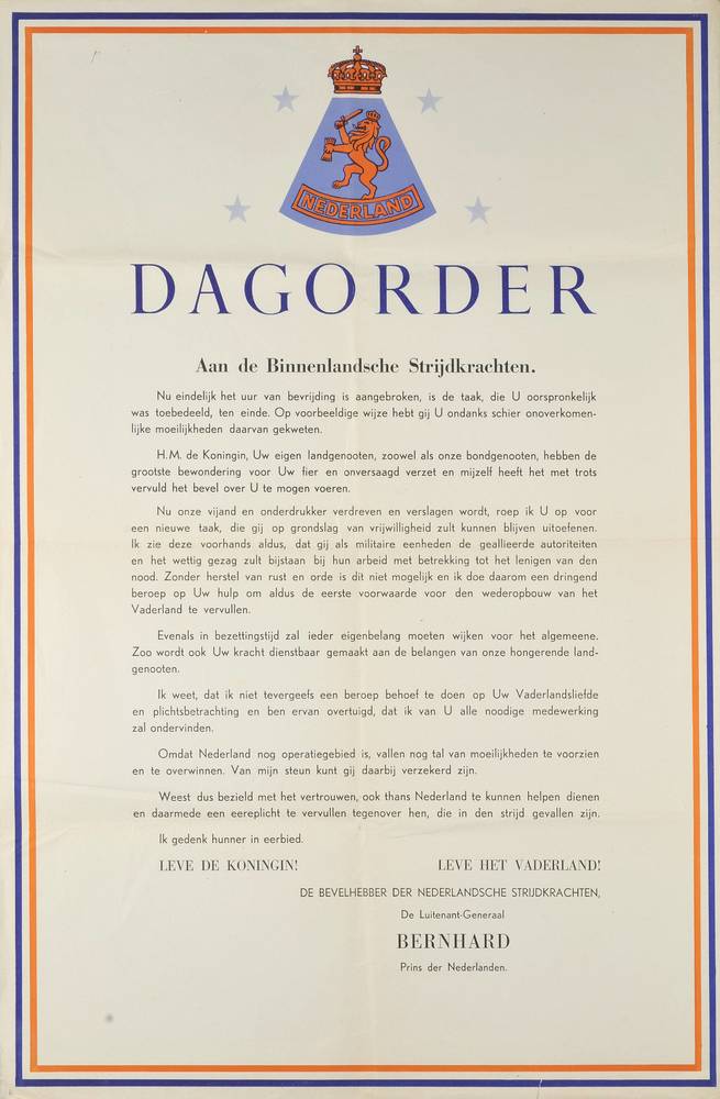 dagorder aan de Binnenlandsche Strijdkrachten