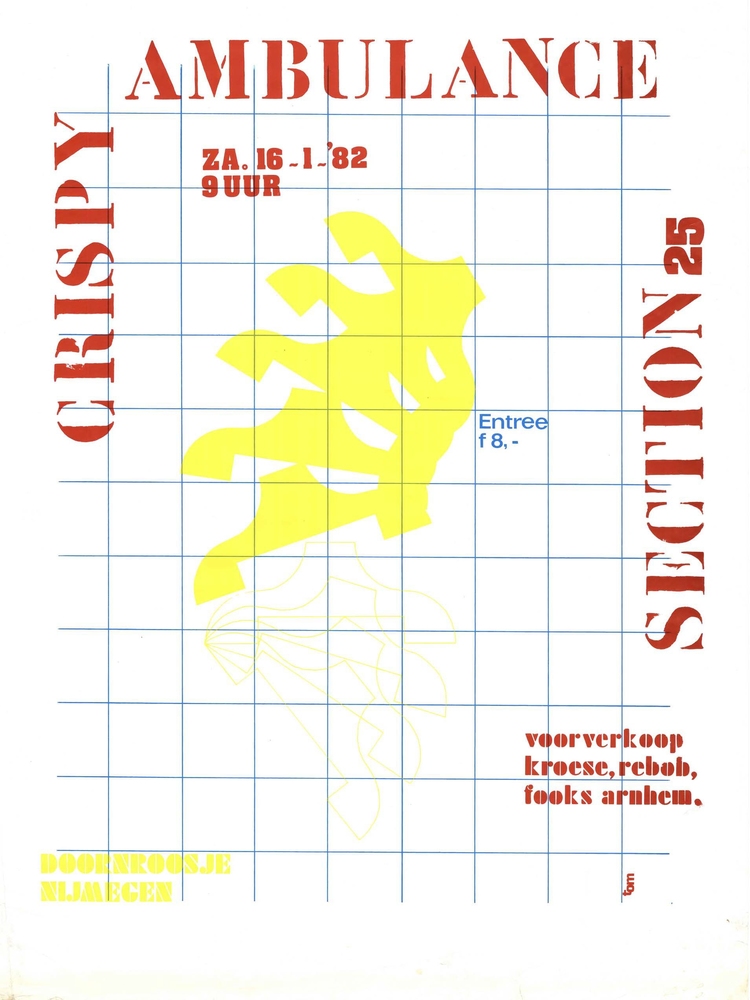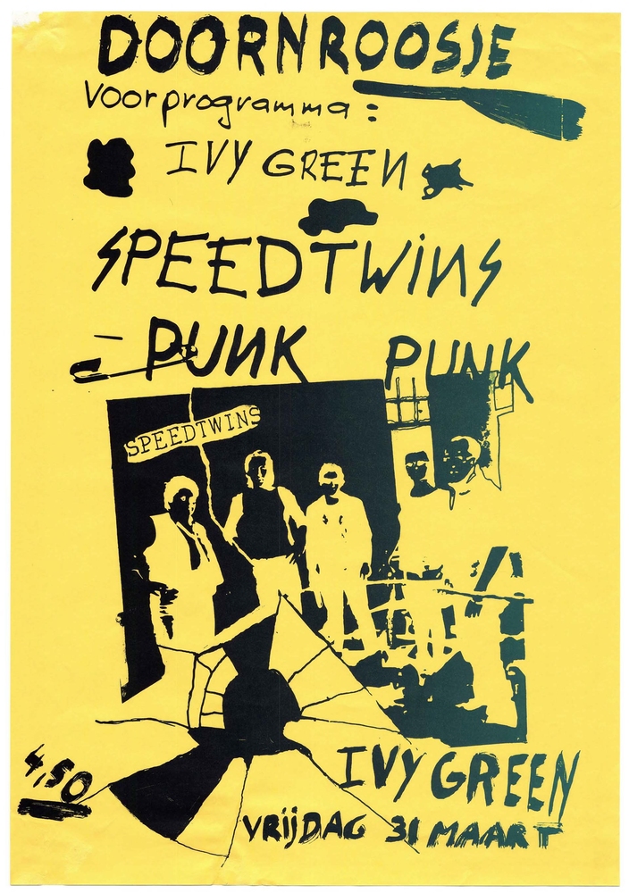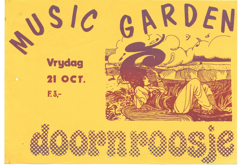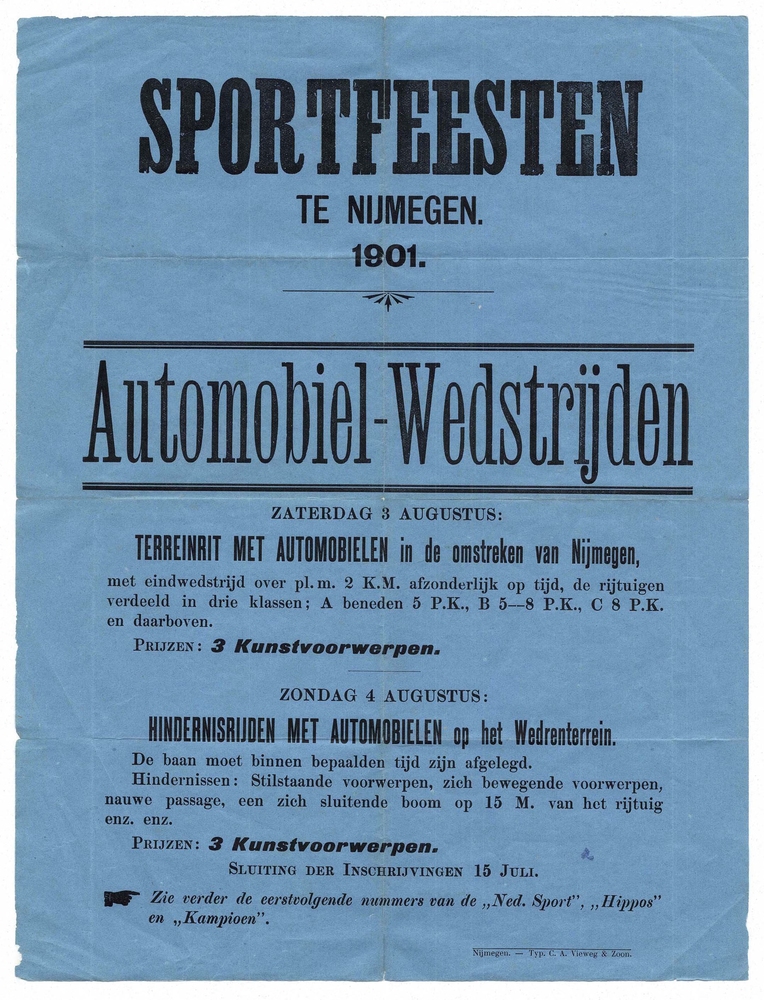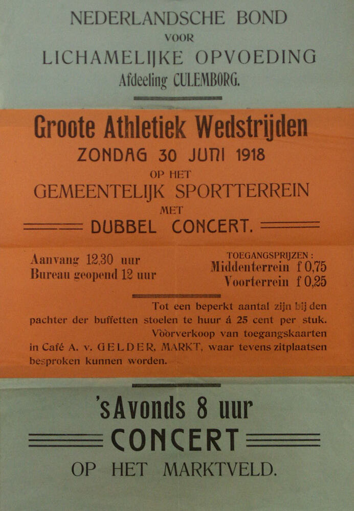 Affiche met aankondiging atletiekwedstrijd en concer...