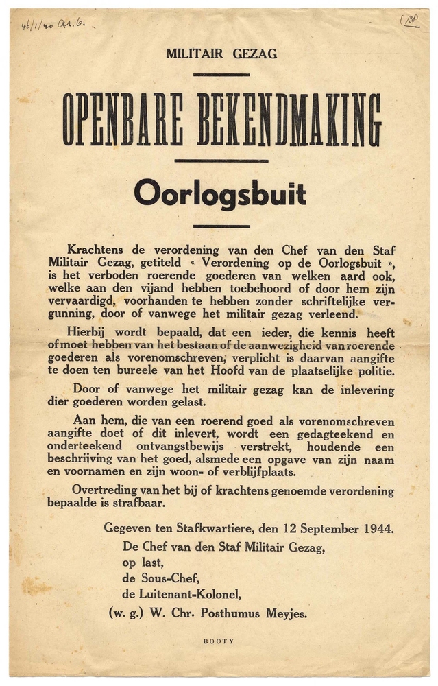 melden van oorlogsbuit op last van het Militair Gezag