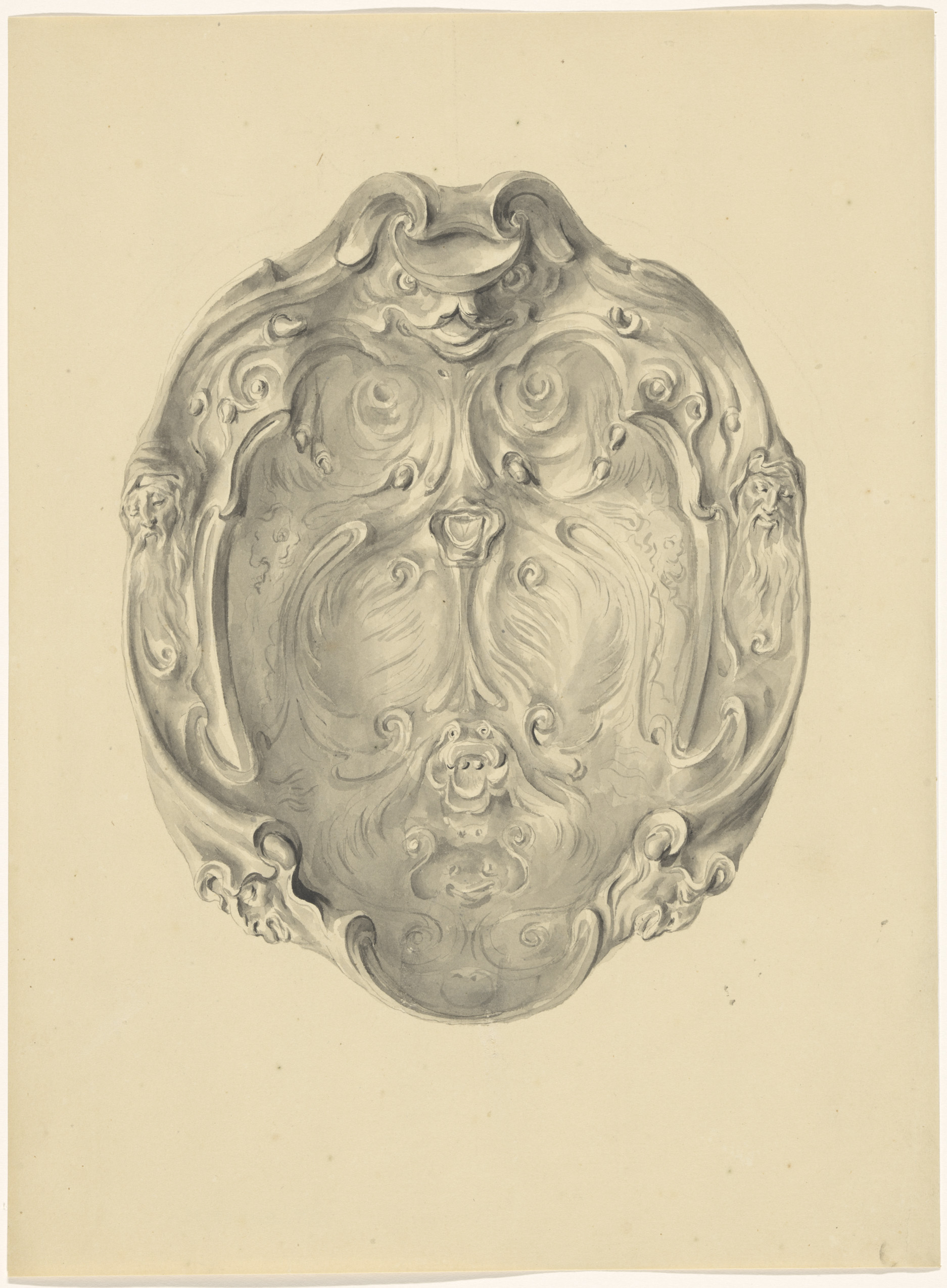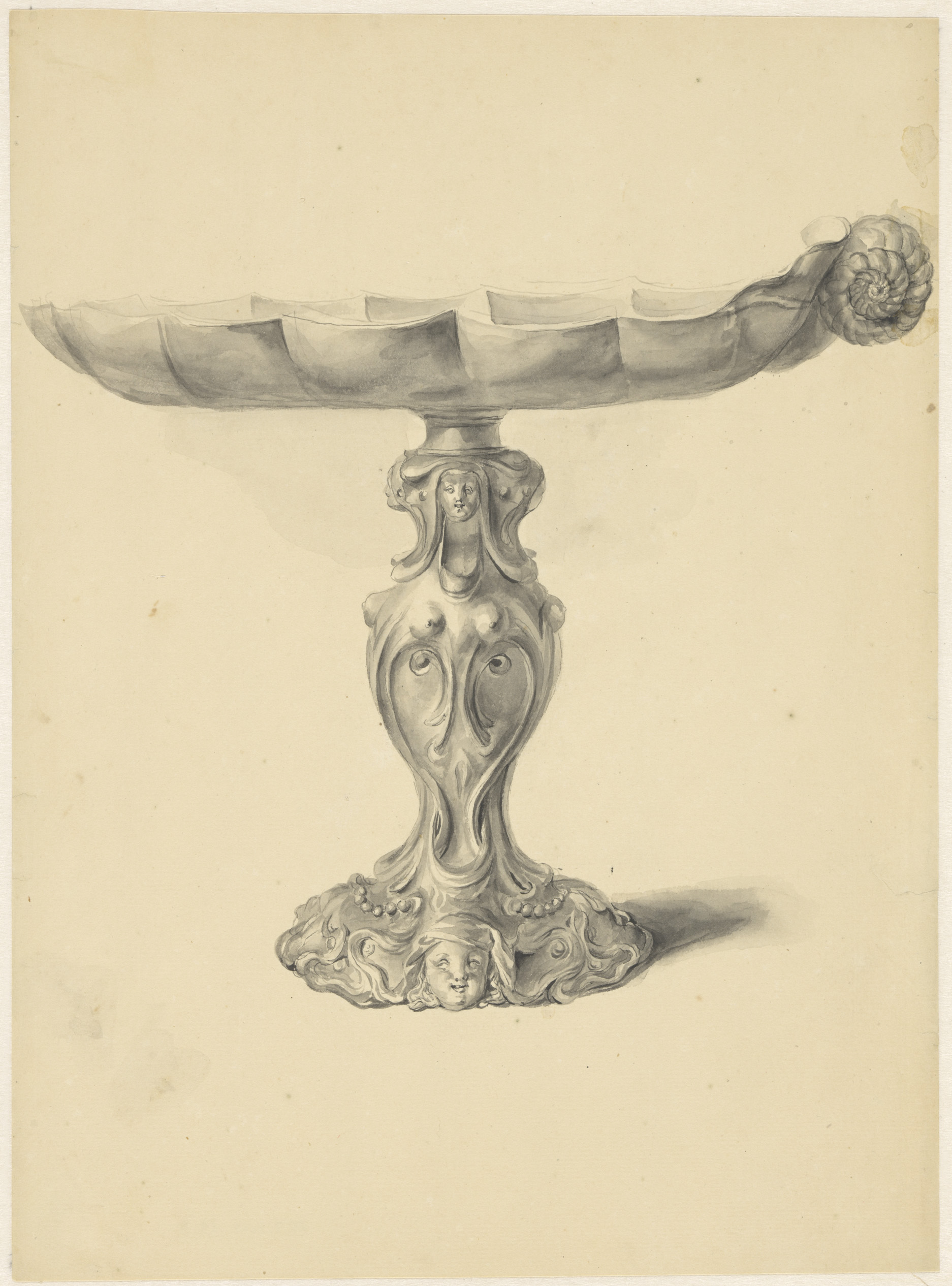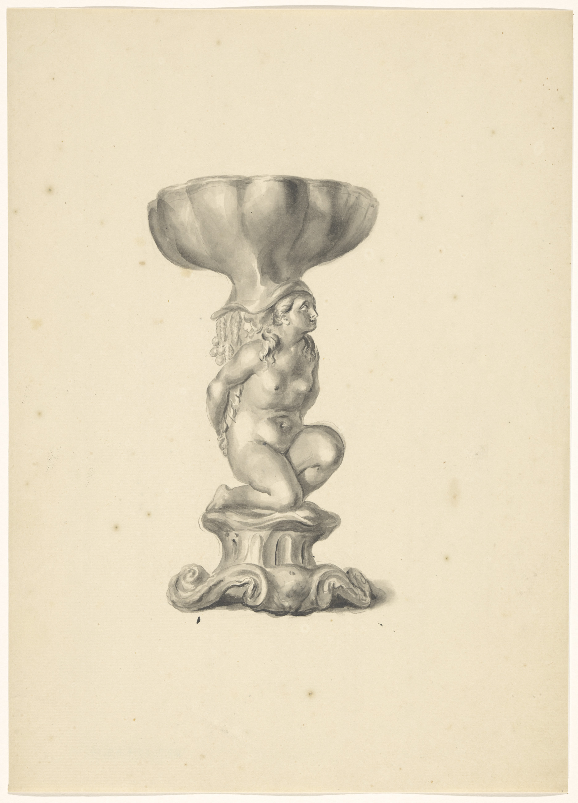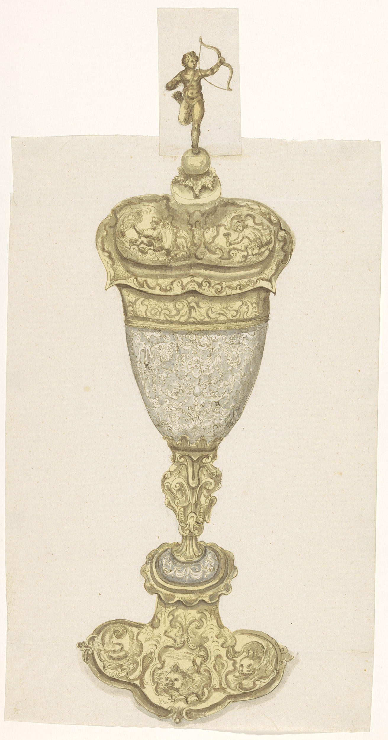 Ontwerptekening voor een vaas met een satyrpaar op h...