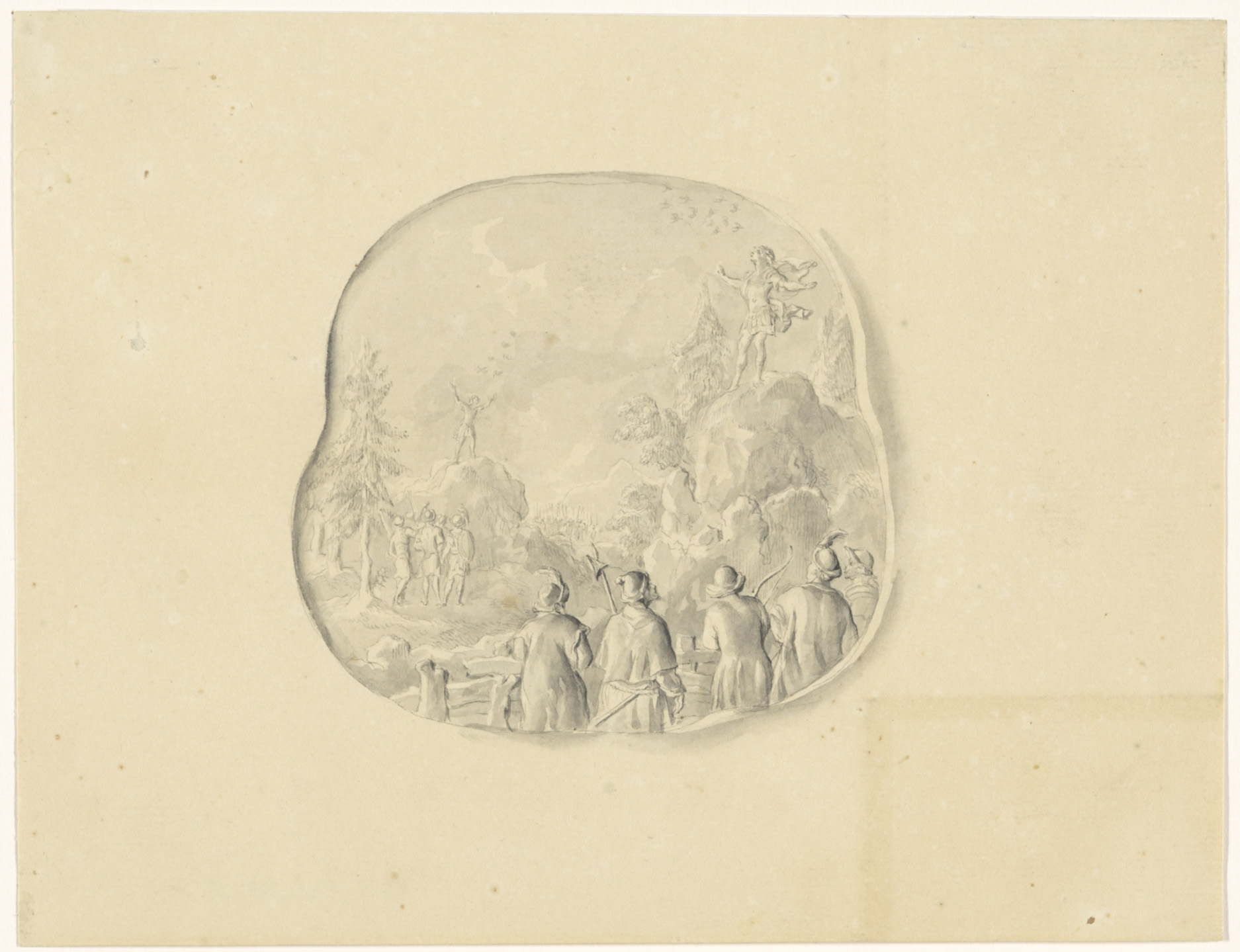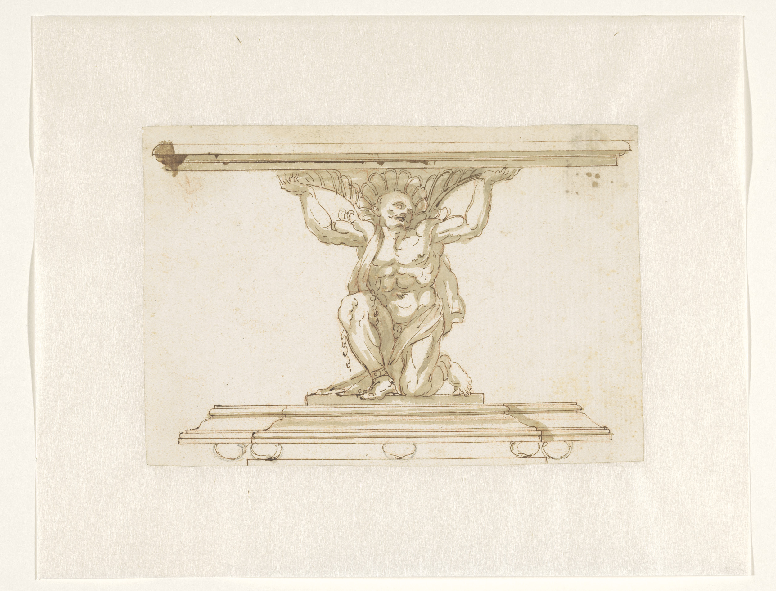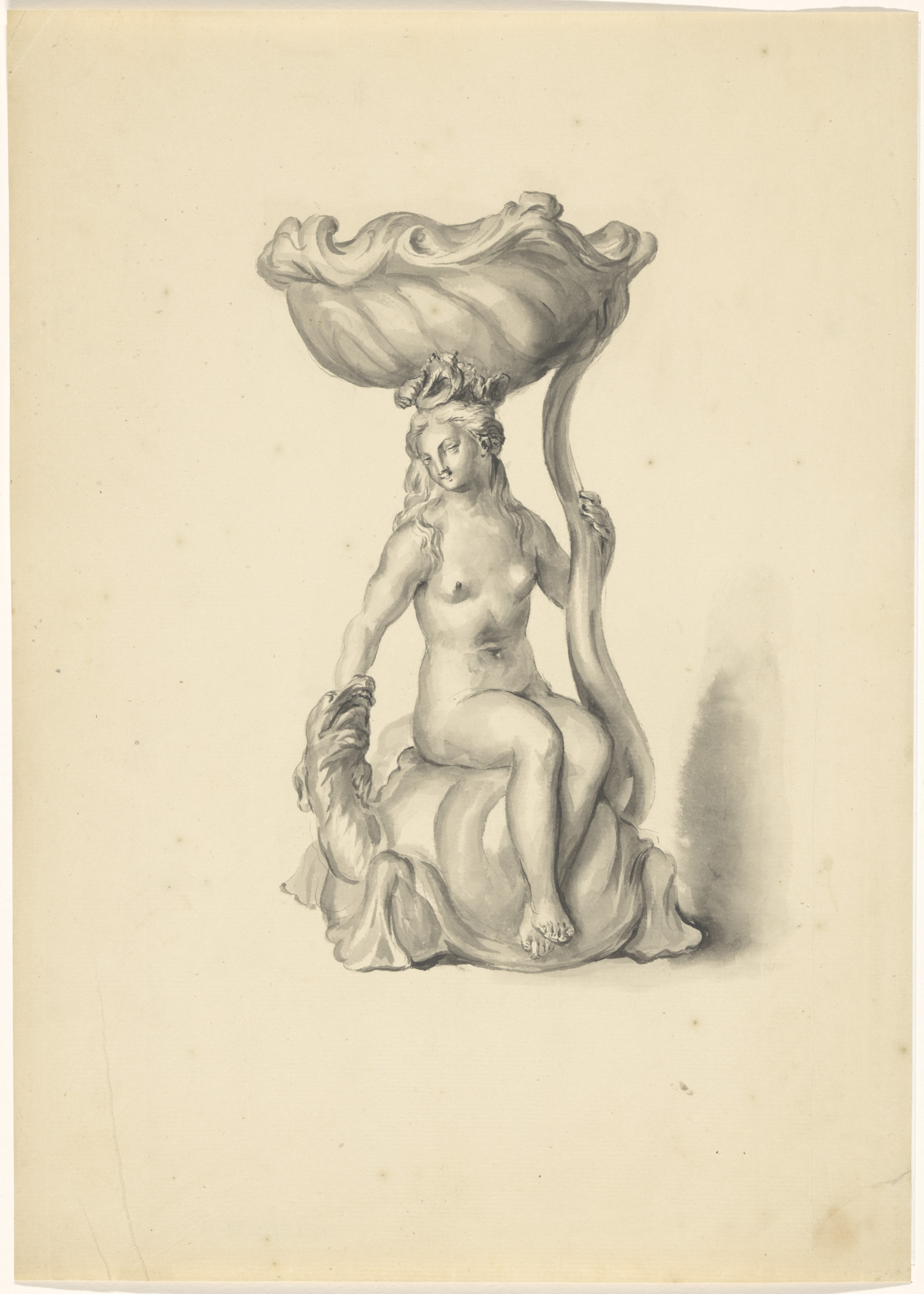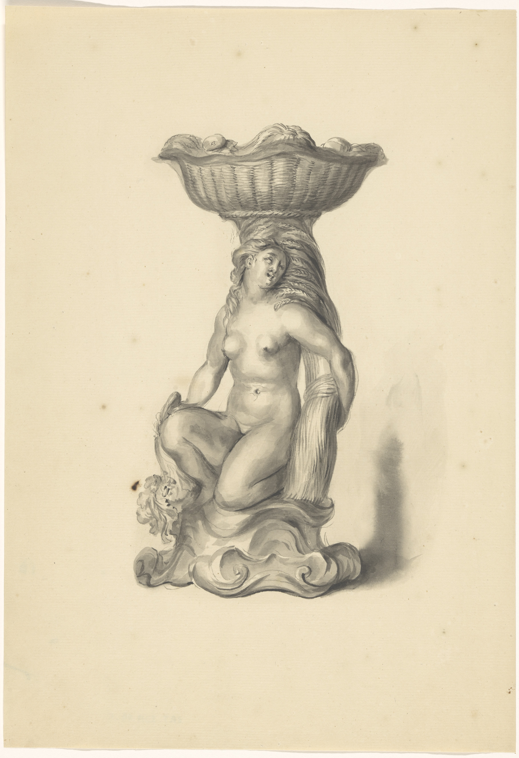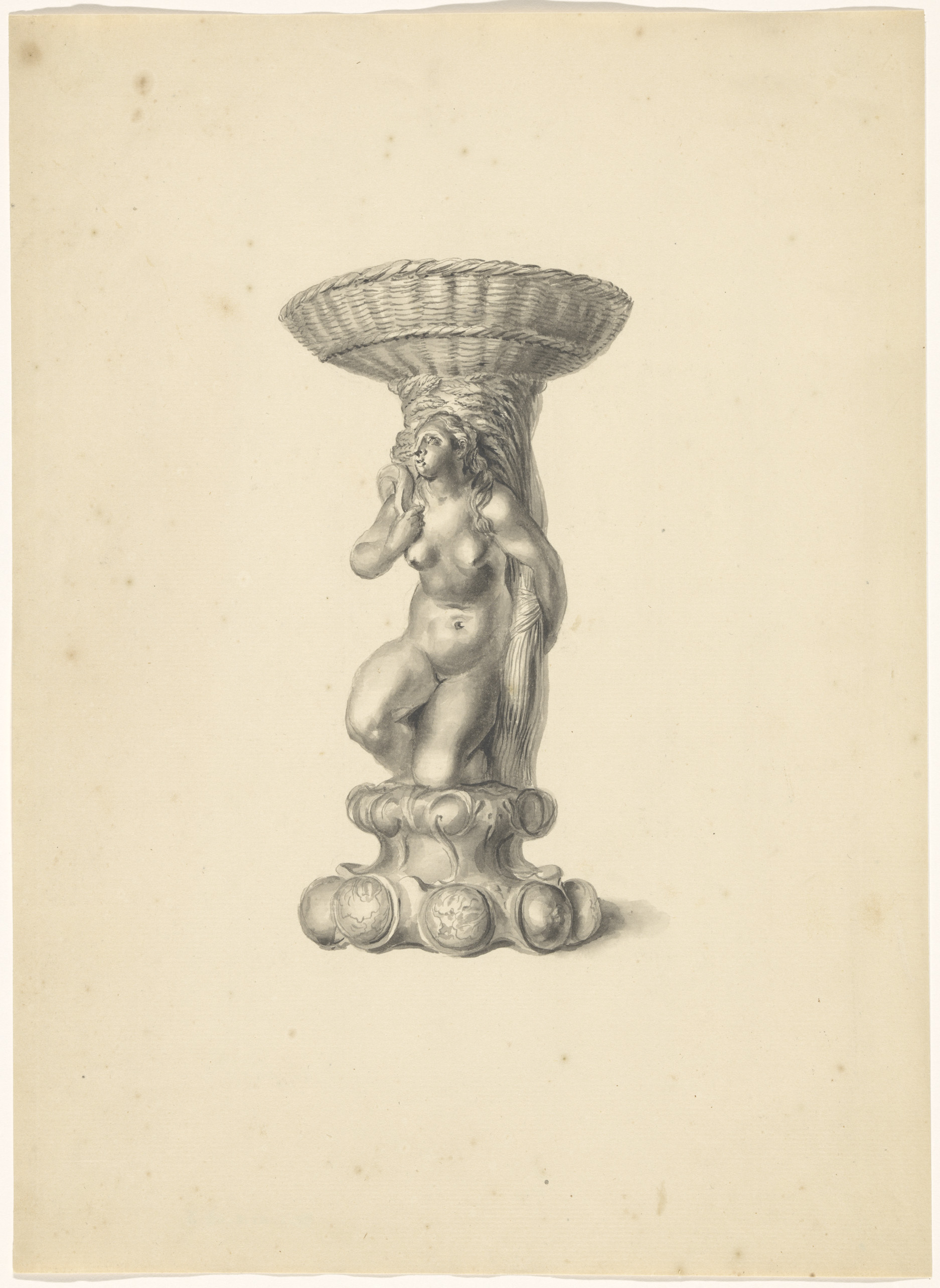 Ontwerptekening voor een vaas met een satyrpaar op h...