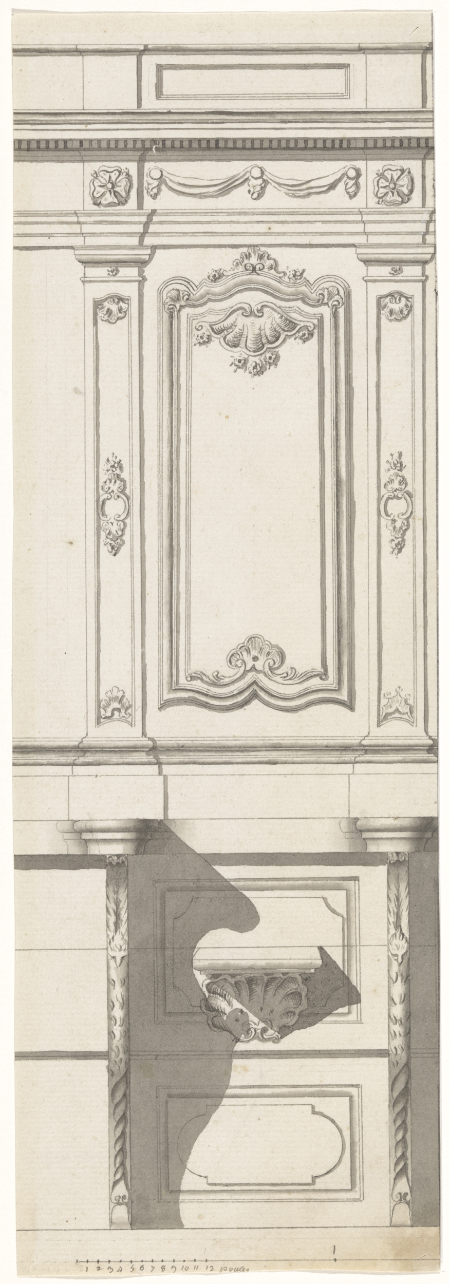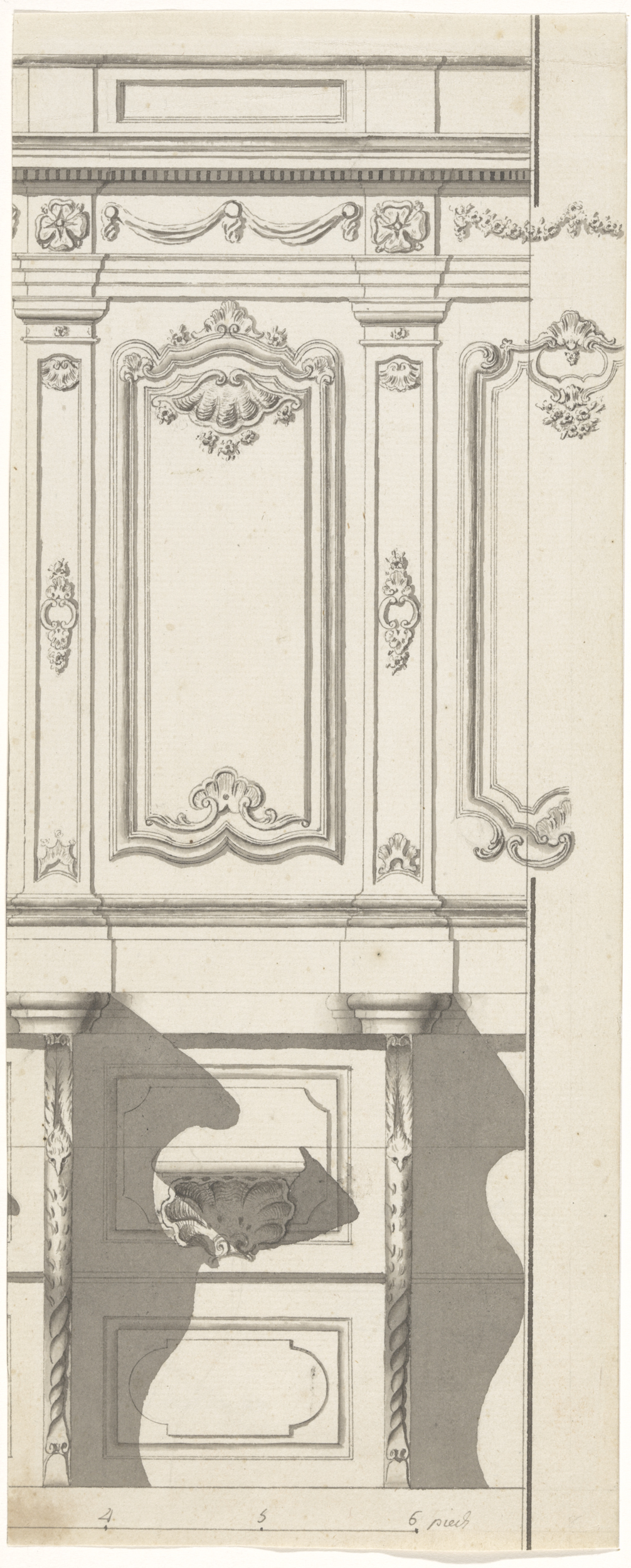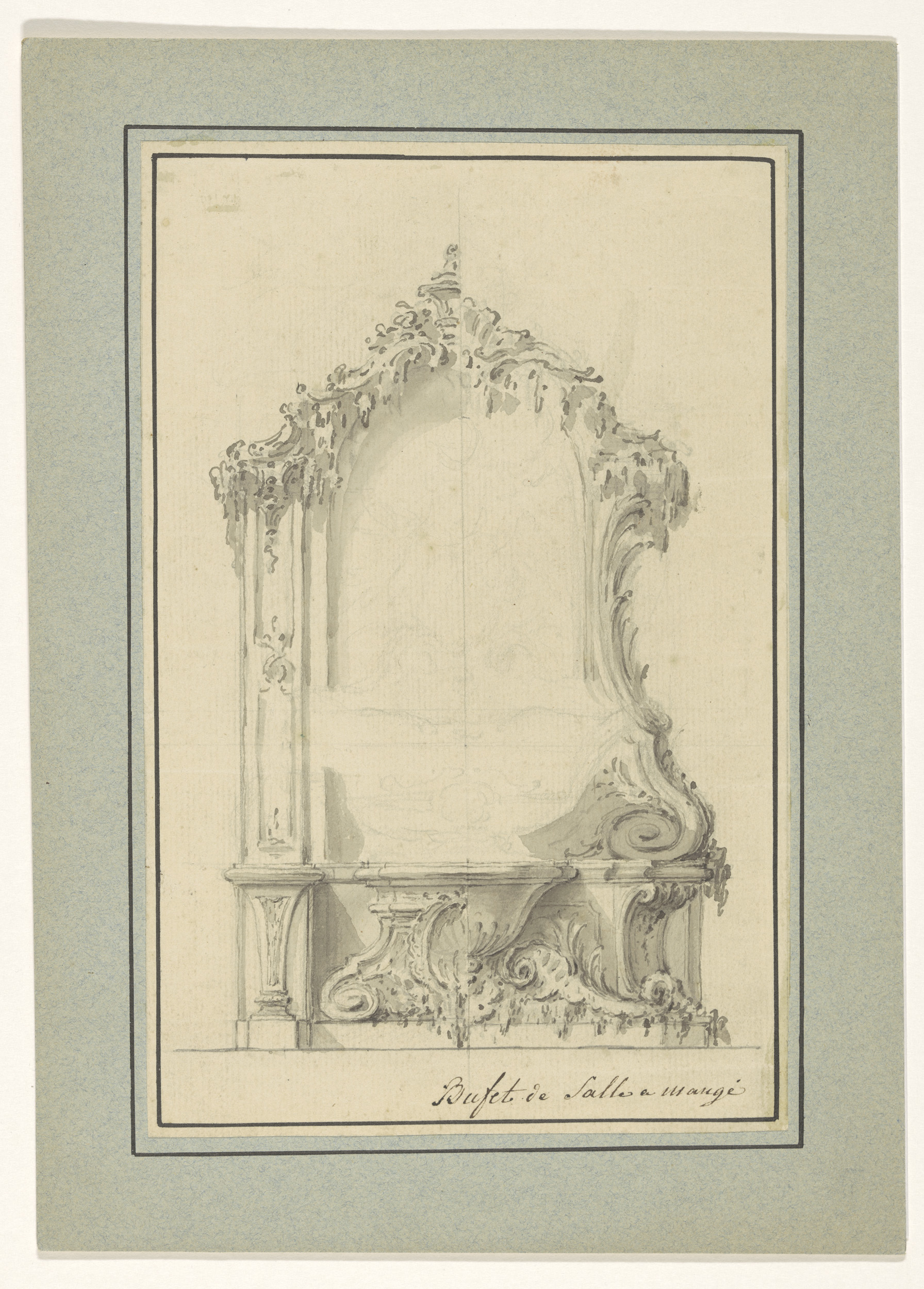 Ontwerptekening buffet met twee apen in rococo-stijl