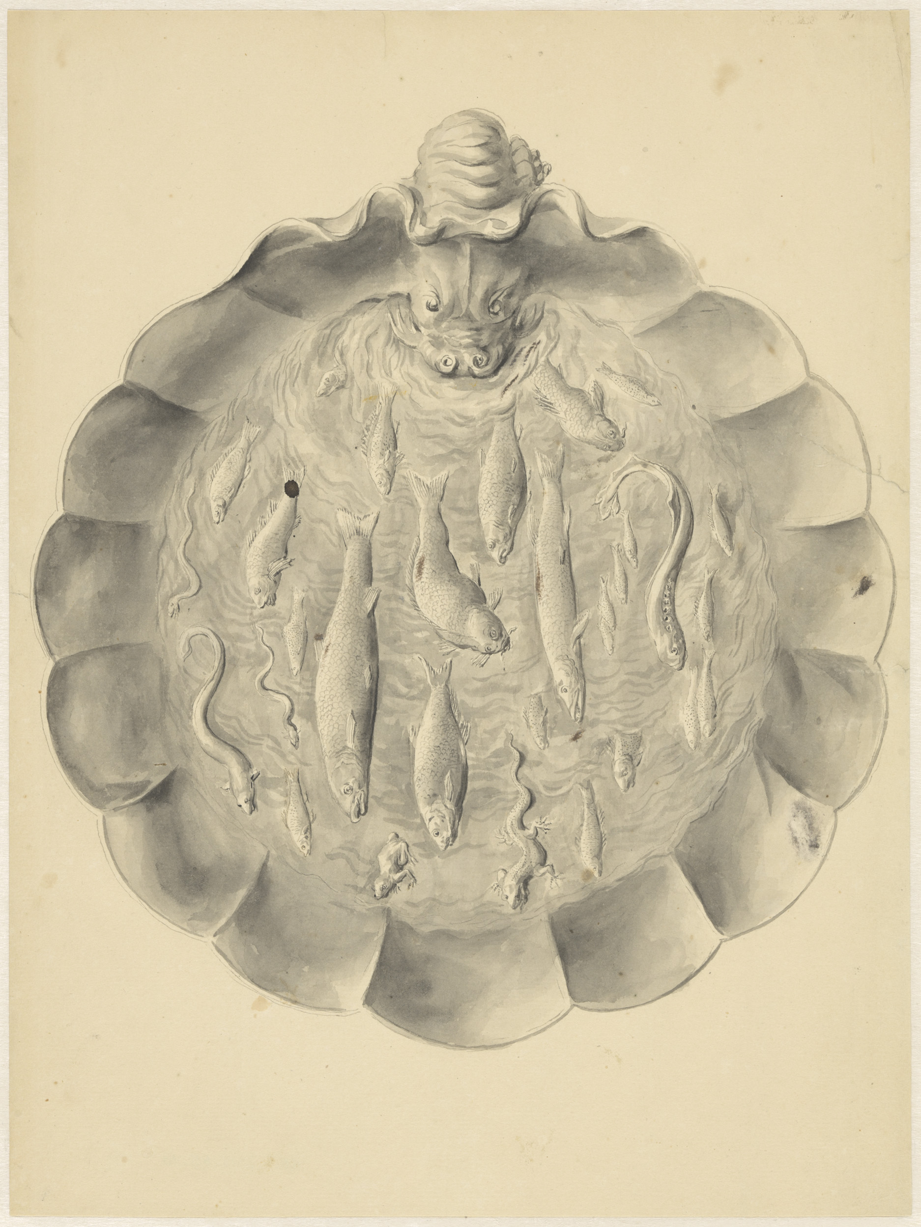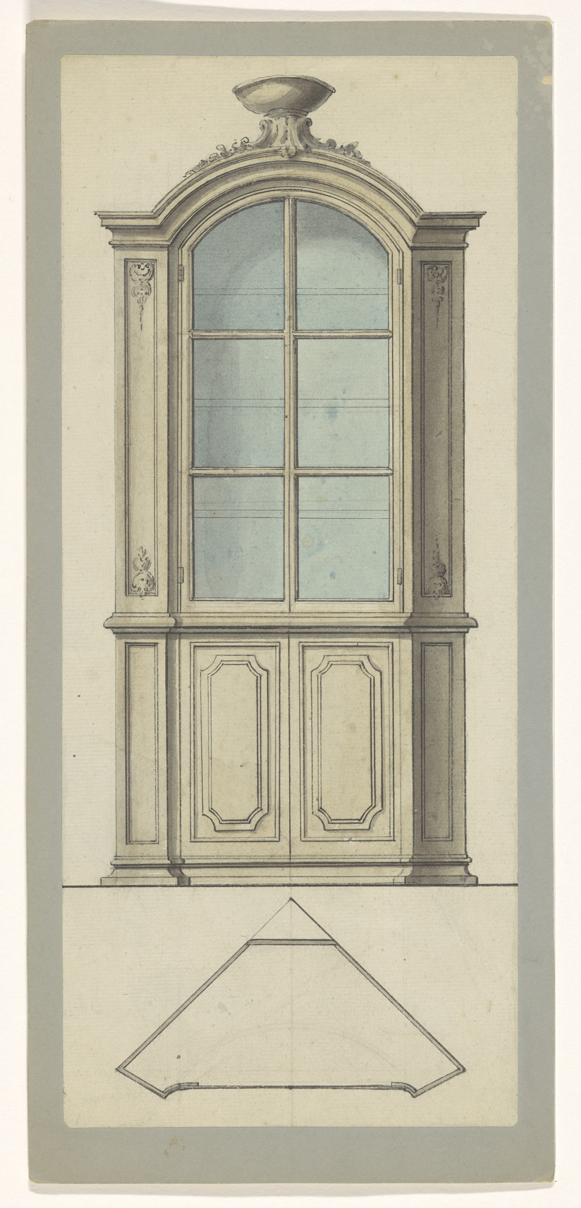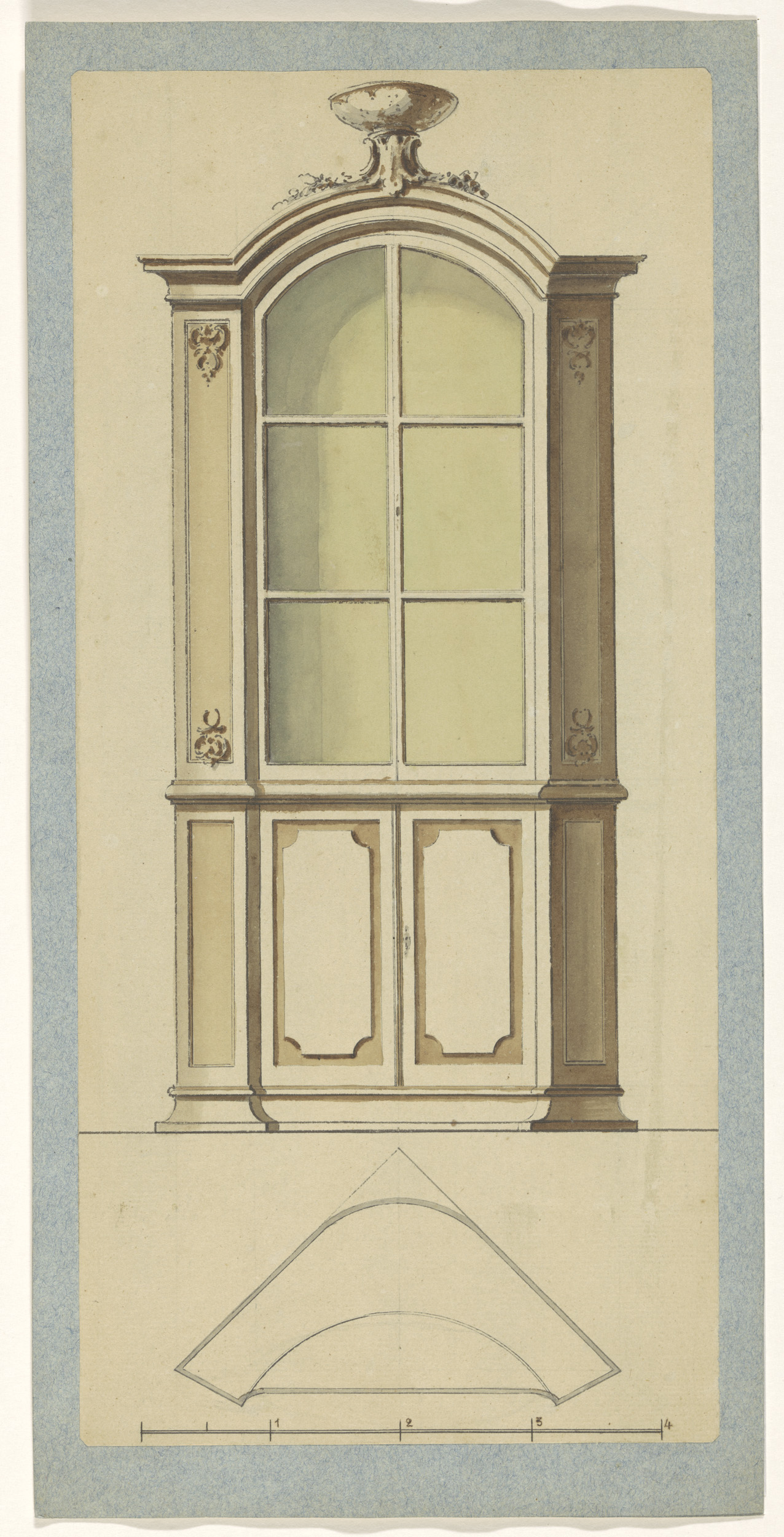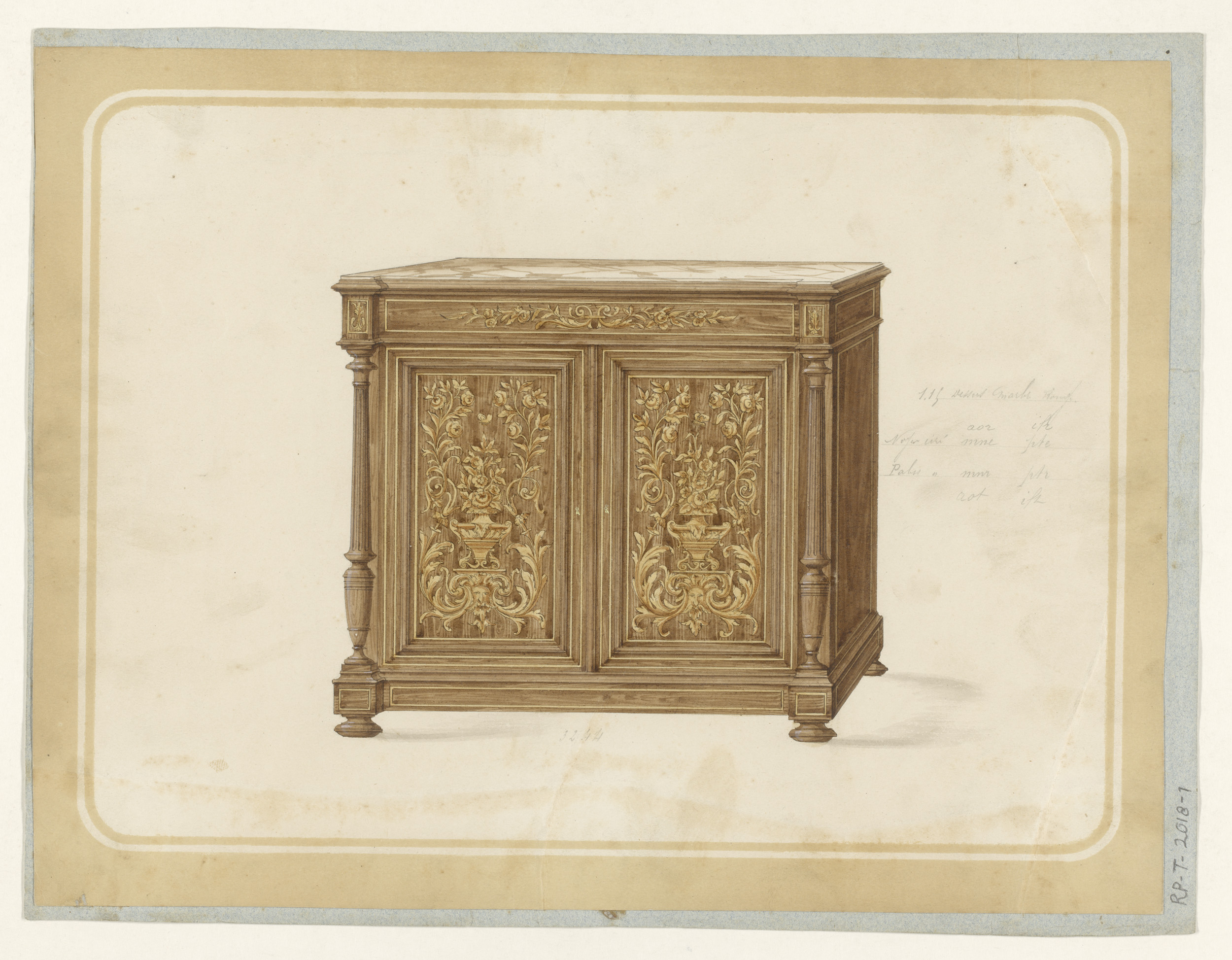 Ontwerptekening buffet met twee apen in rococo-stijl