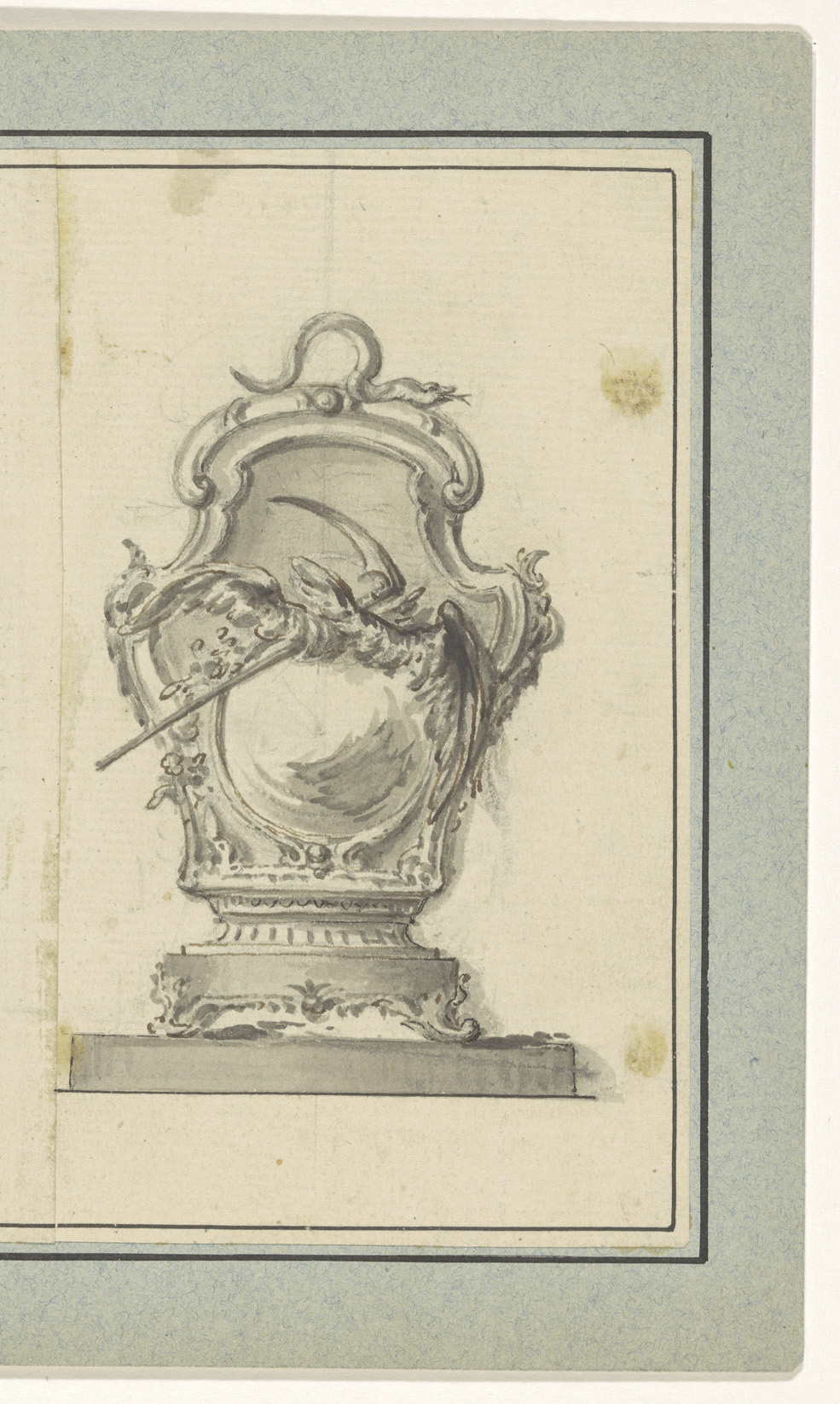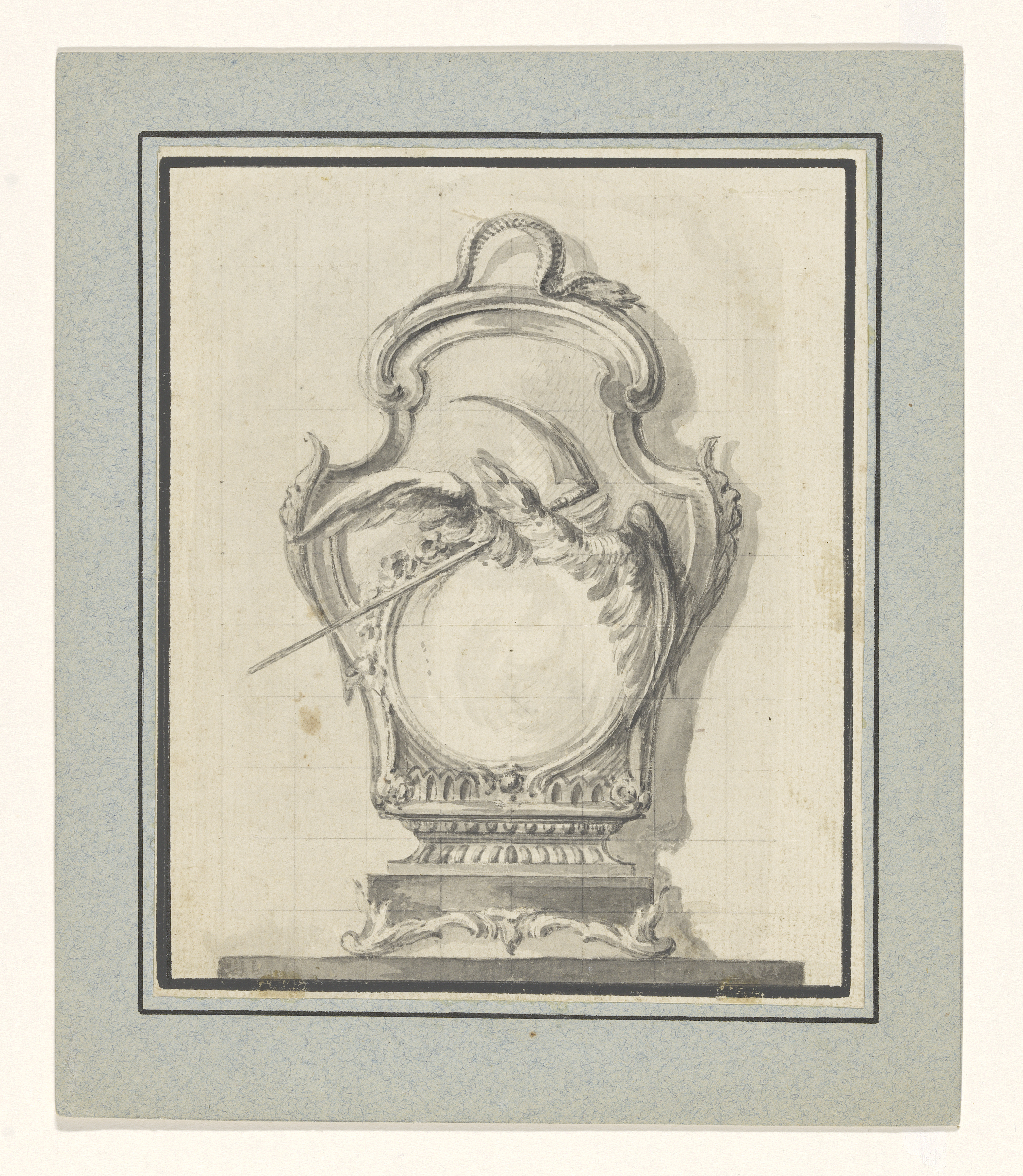 Ontwerptekening pendule met slang, zeis en vleugels ...
