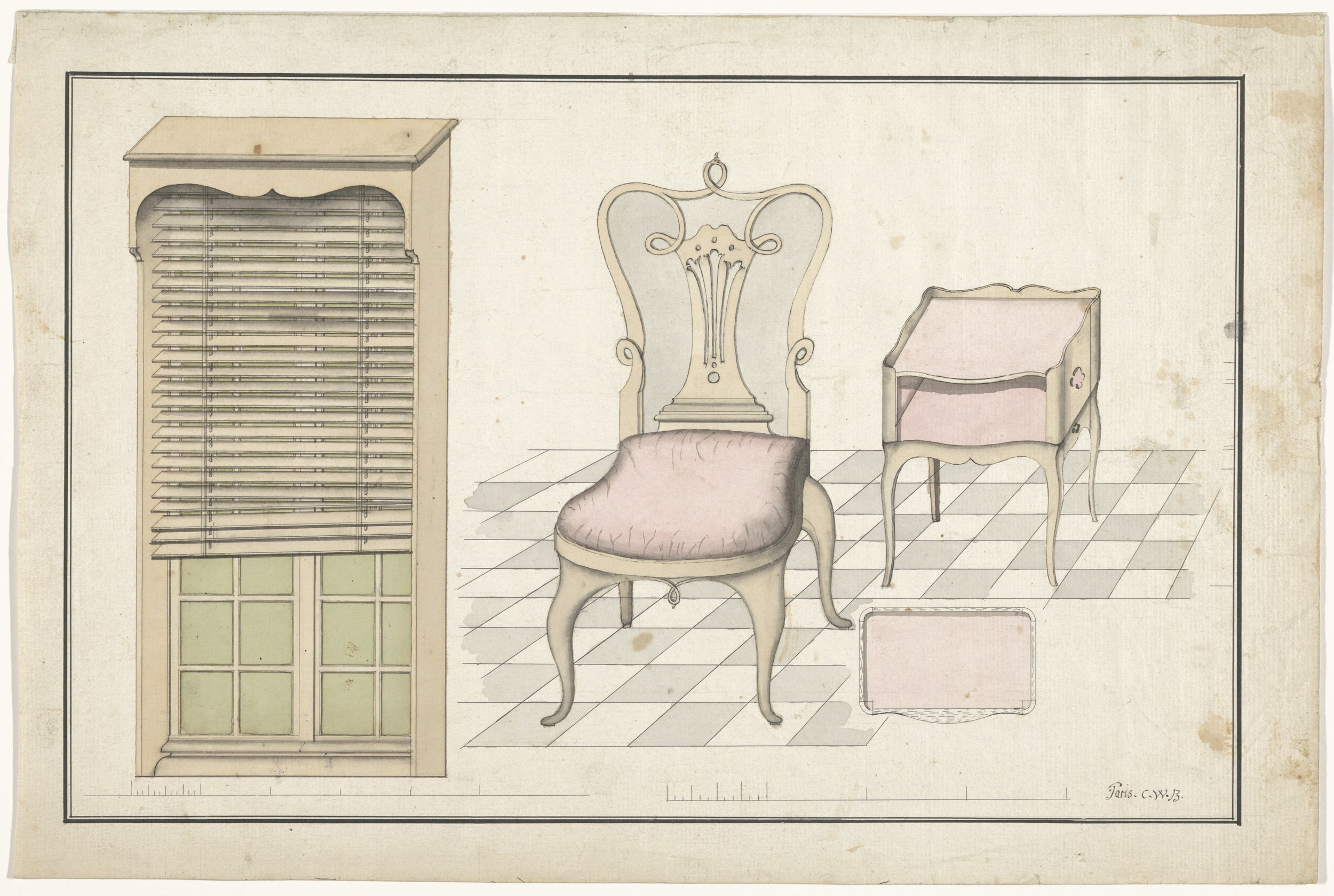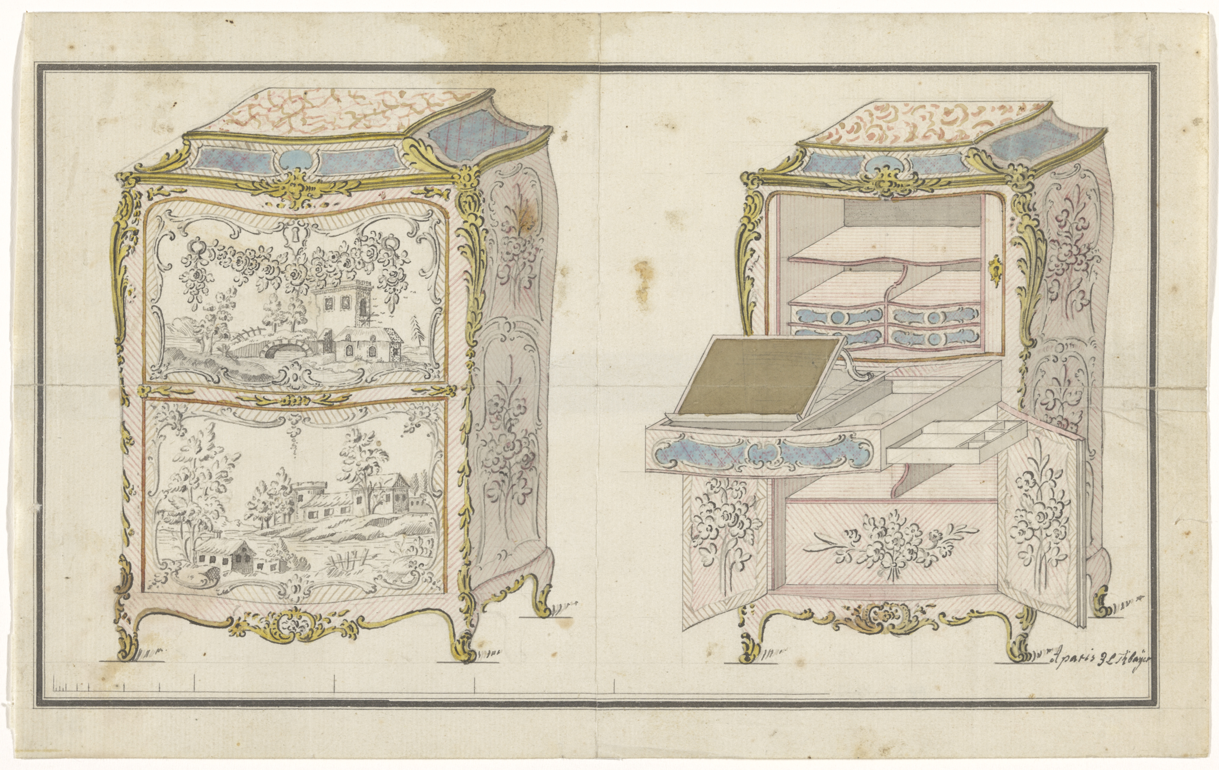 Ontwerp voor een bureau, met een variant in de decor...