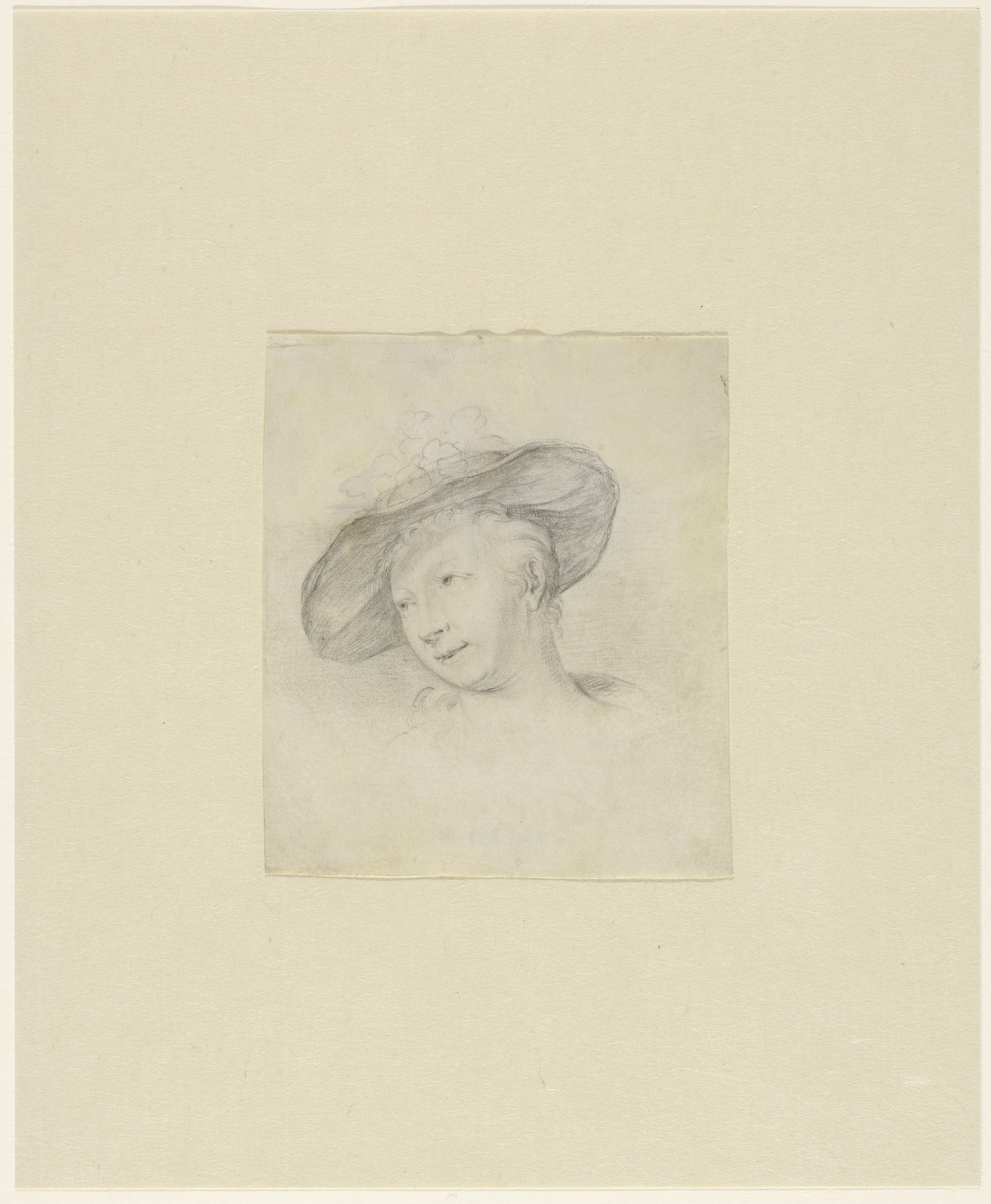 Hoofd van een elegante herderin met hoed
