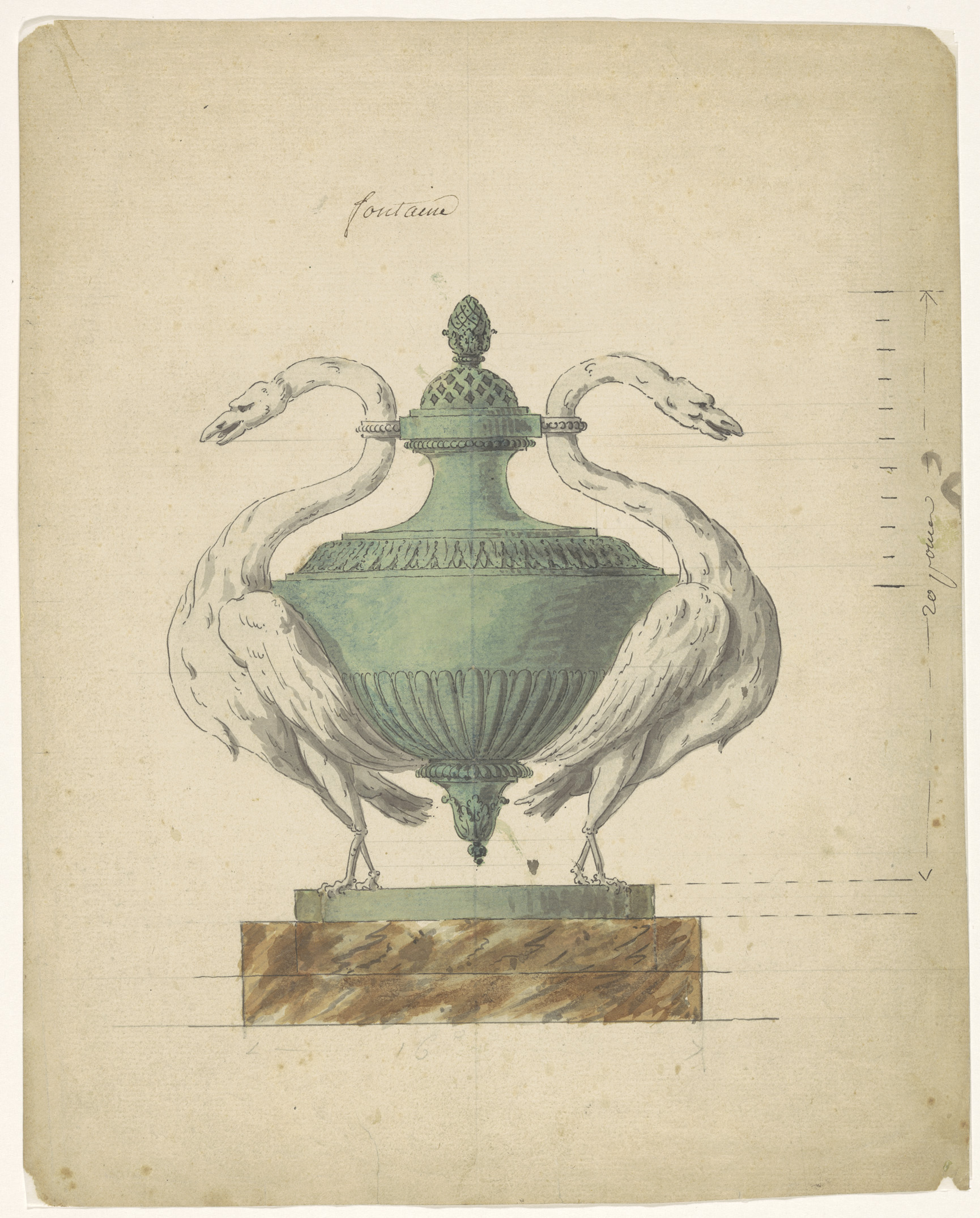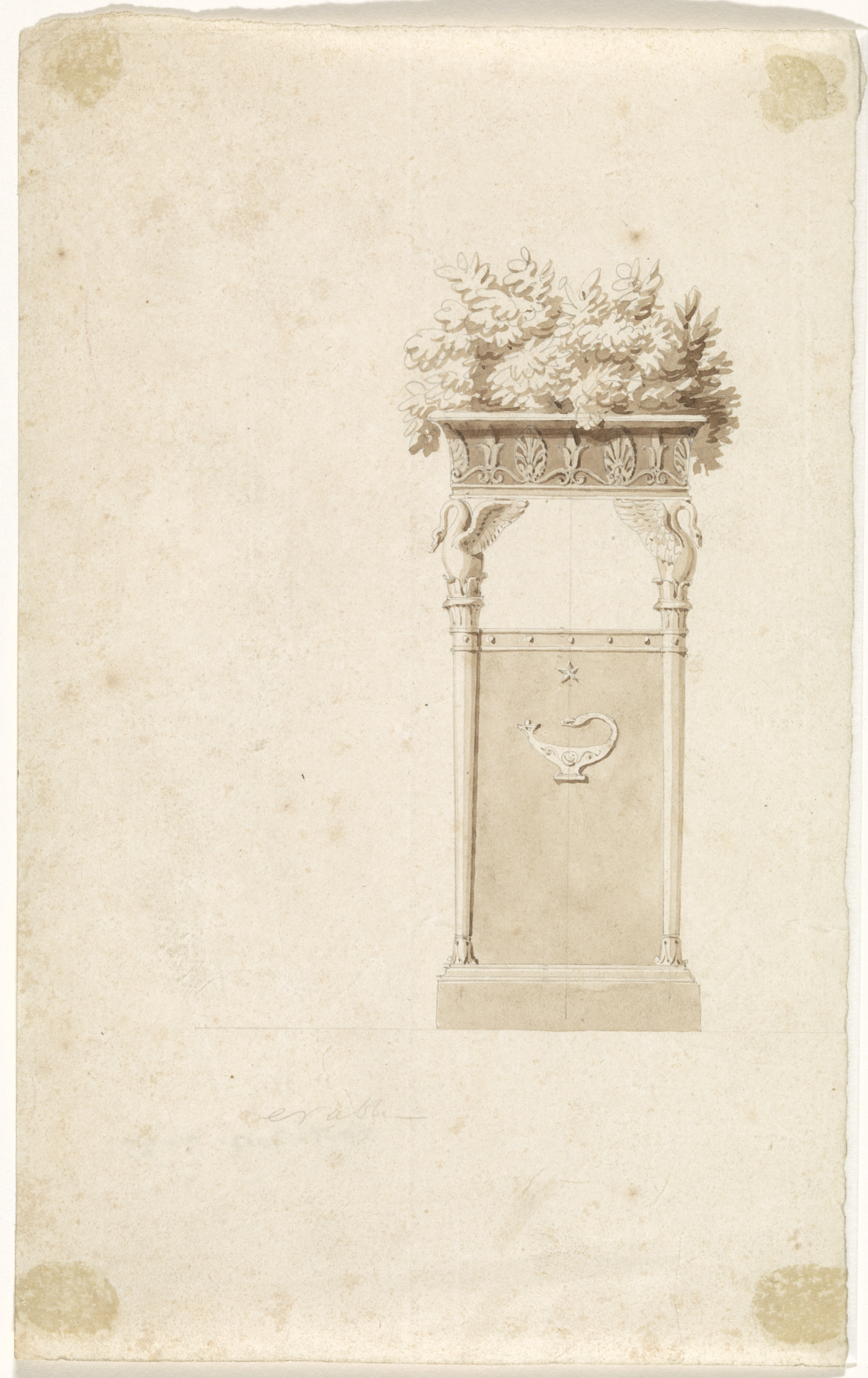 Ontwerptekening voor een gepatineerd bronzen reukvaas