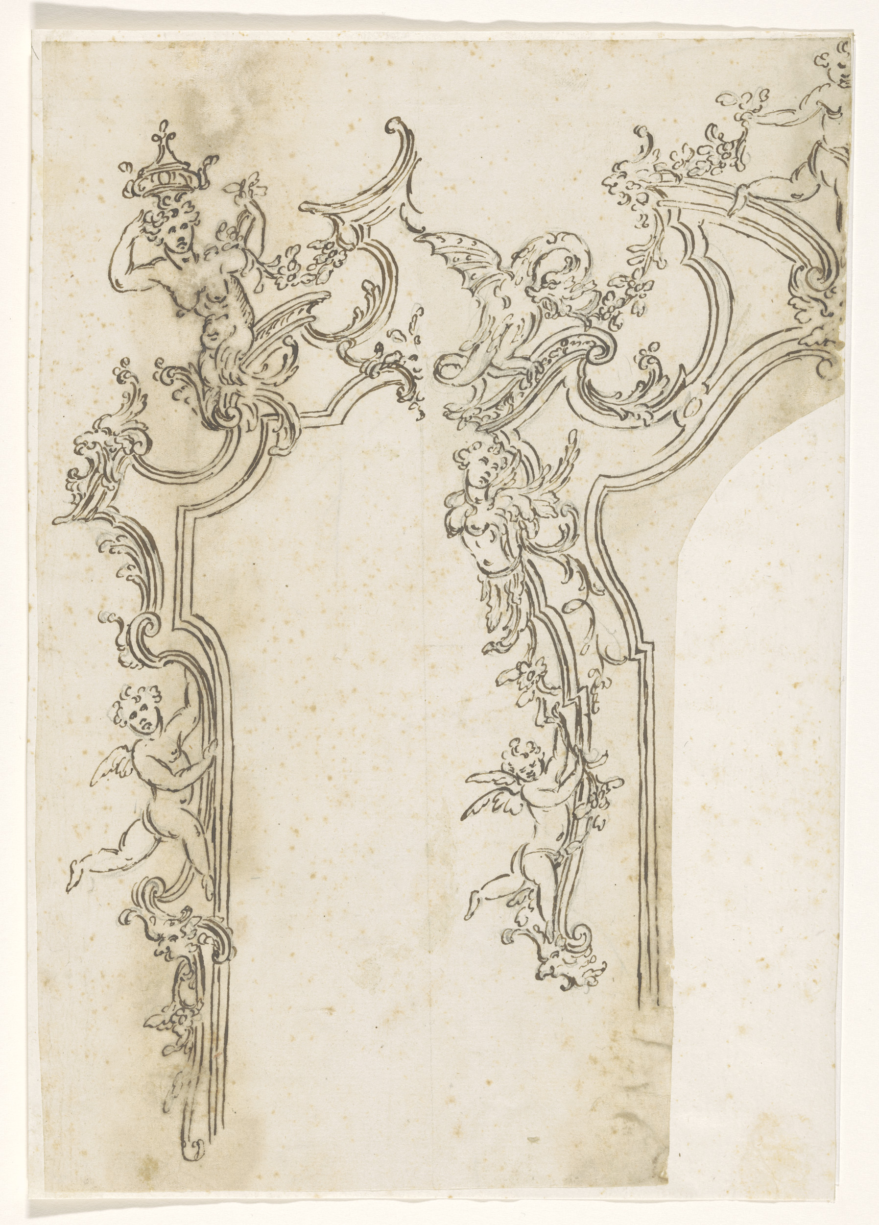 Ontwerp voor een lijst met twee putti
