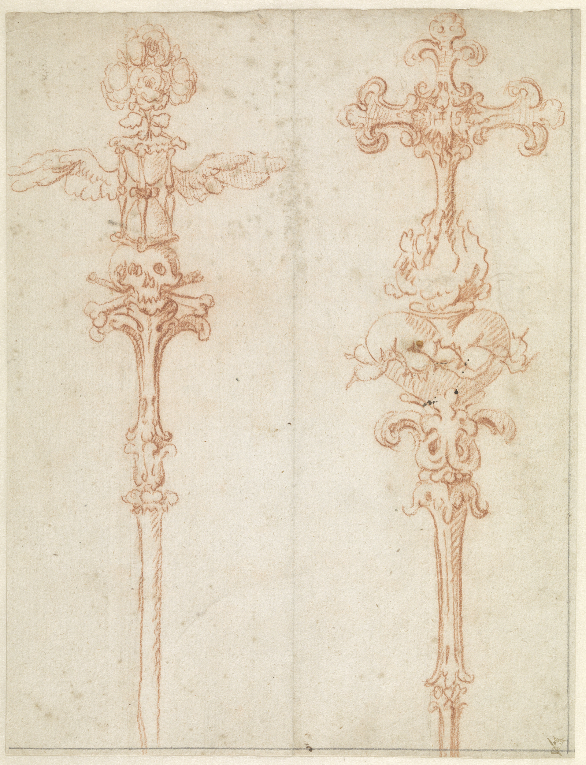 Ontwerp voor twee begrafeniskruizen of -staven