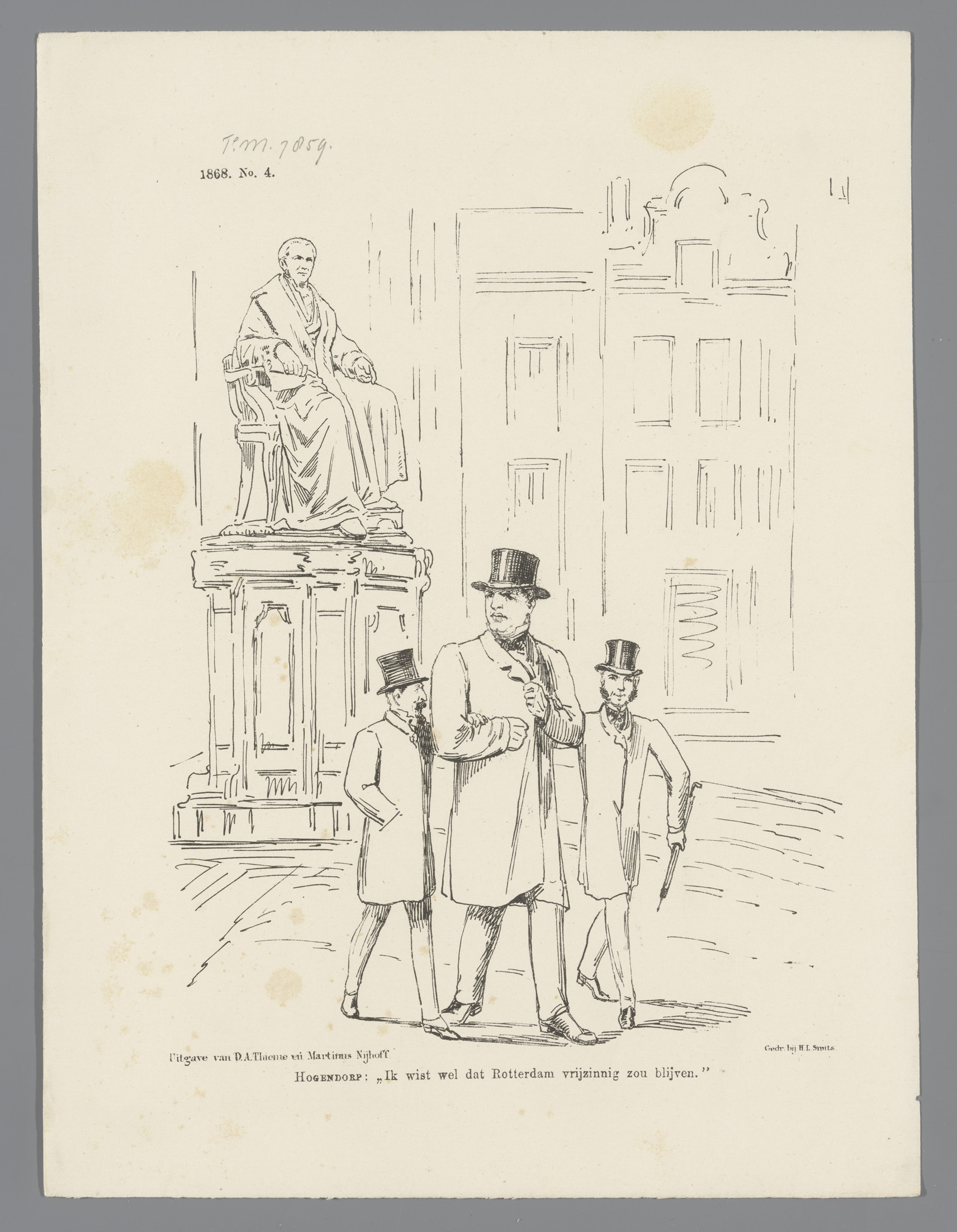 Spotprent met de onthulling van het standbeeld van H...
