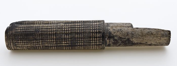 Fragment van houten koker, versierd met fijne draair...