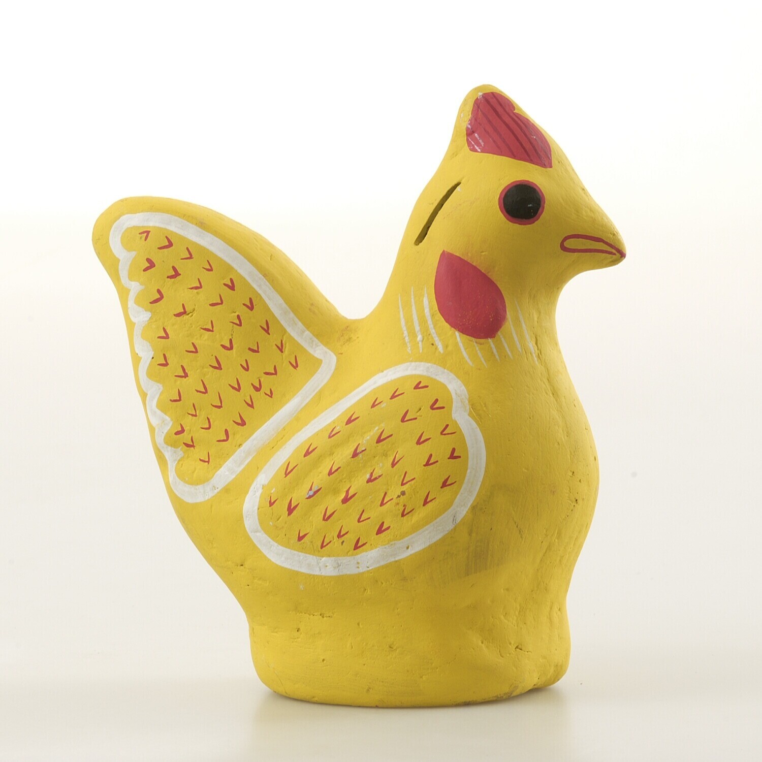 Aardewerken spaarpot in de vorm van een zittende kip