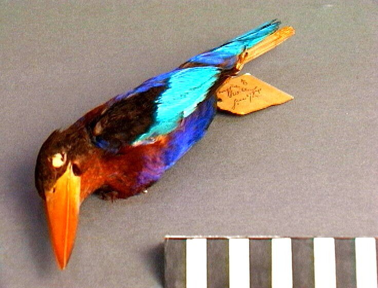 Opgezette ijsvogel, vermoedelijk bruinborstijsvogel ...