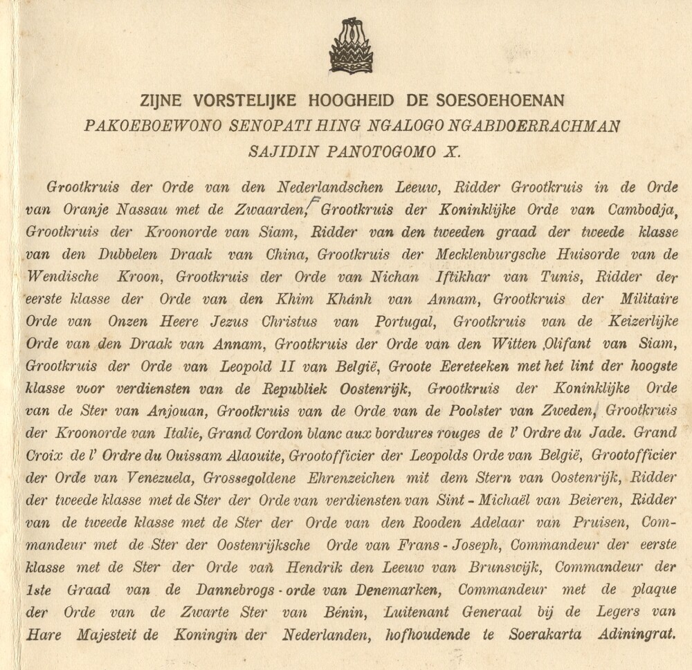 Uitnodiging namens de Soesoehoenan tot het bijwonen ...
