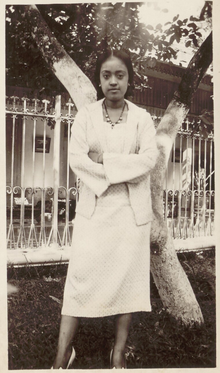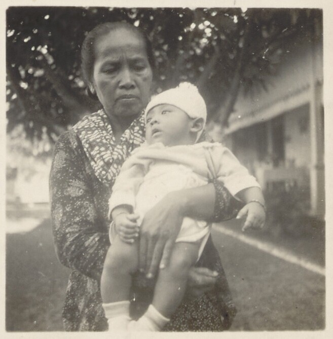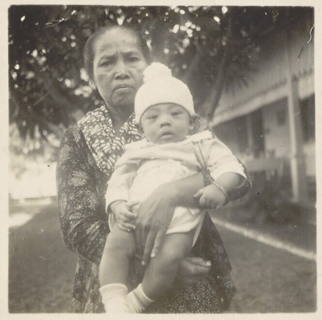 Ratoe Iboe (Hemas) met haar pleegzoontje en dochter