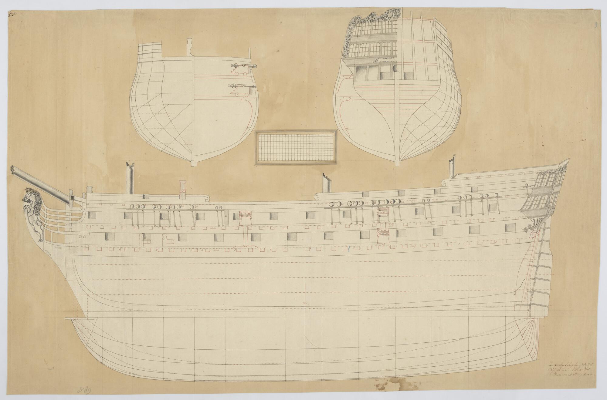 Lijnenplan van een schip van 60 stukken