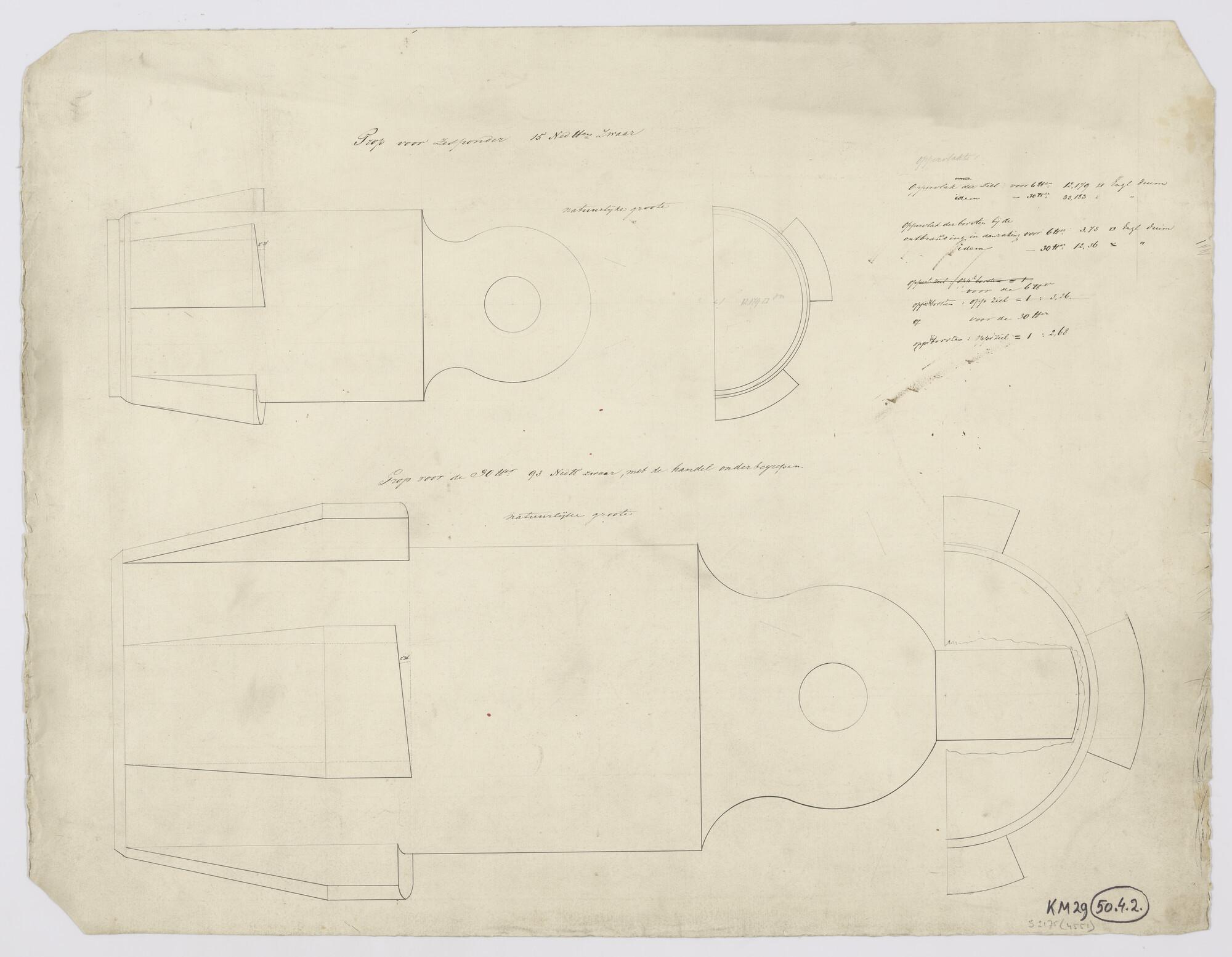 Prop (sluitstuk) van een kanon van 6 lb en van 30 lb.