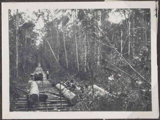 Personenvervoer op een houtkapperij van het Boschwez...