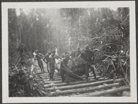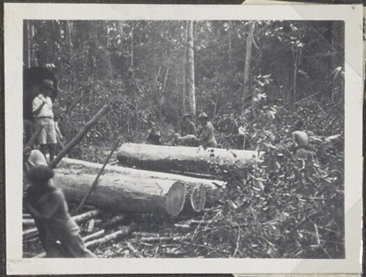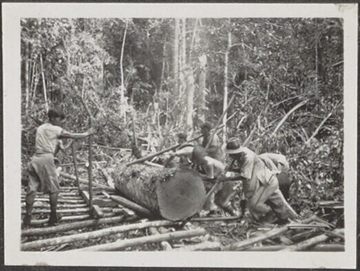 Personenvervoer op een houtkapperij van het Boschwez...