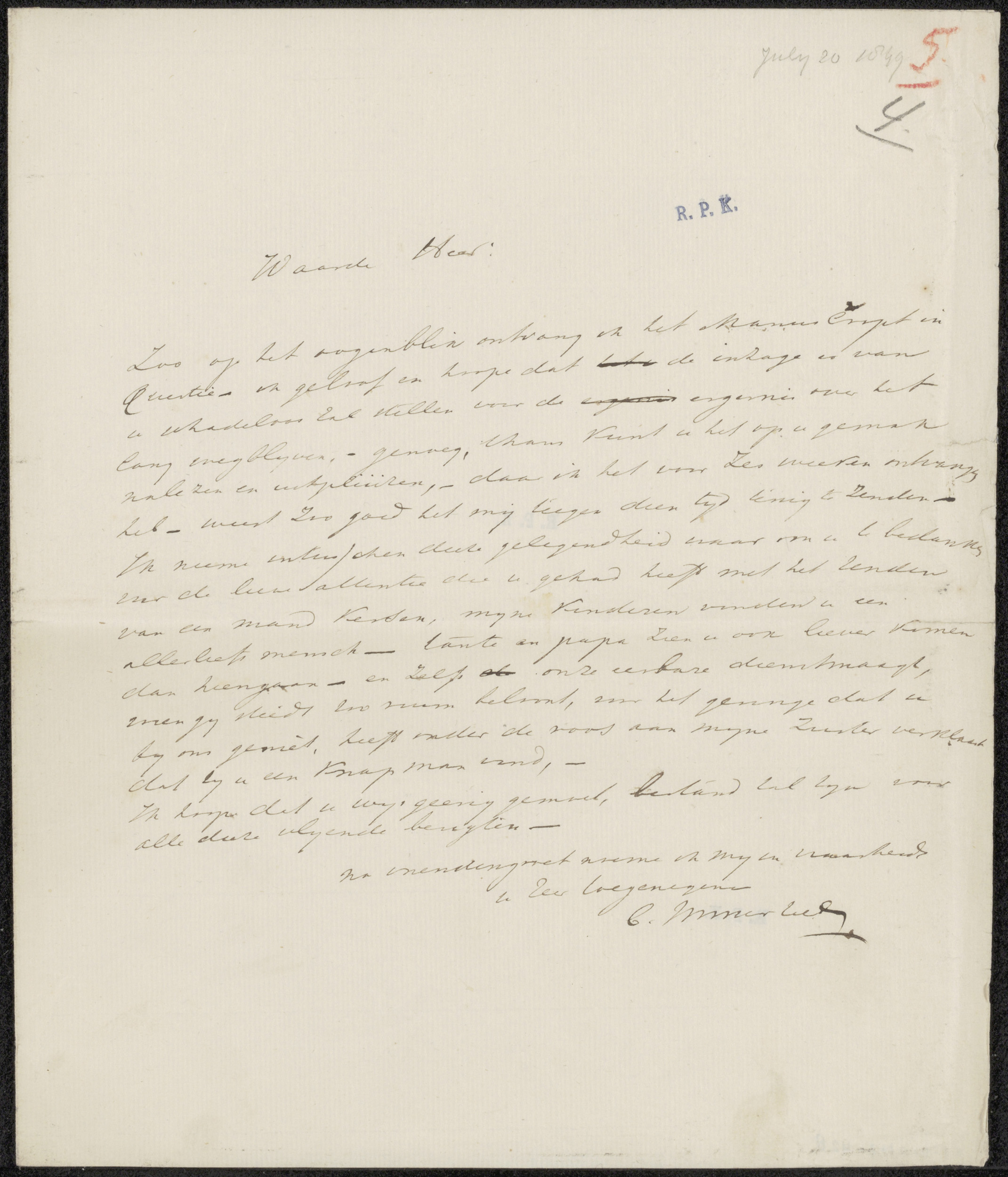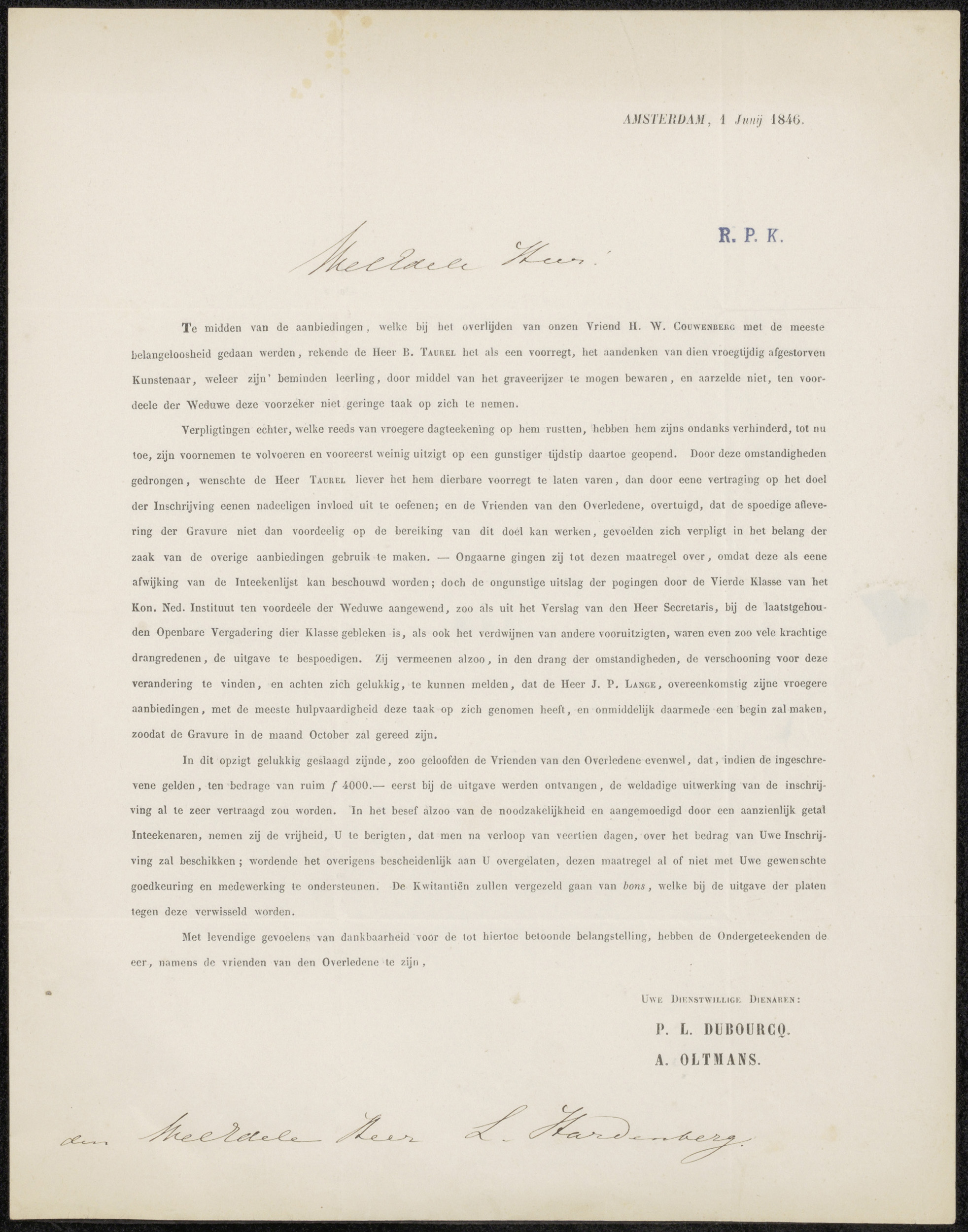 Brief aan anoniem (vermoedelijk Christiaan Kramm)