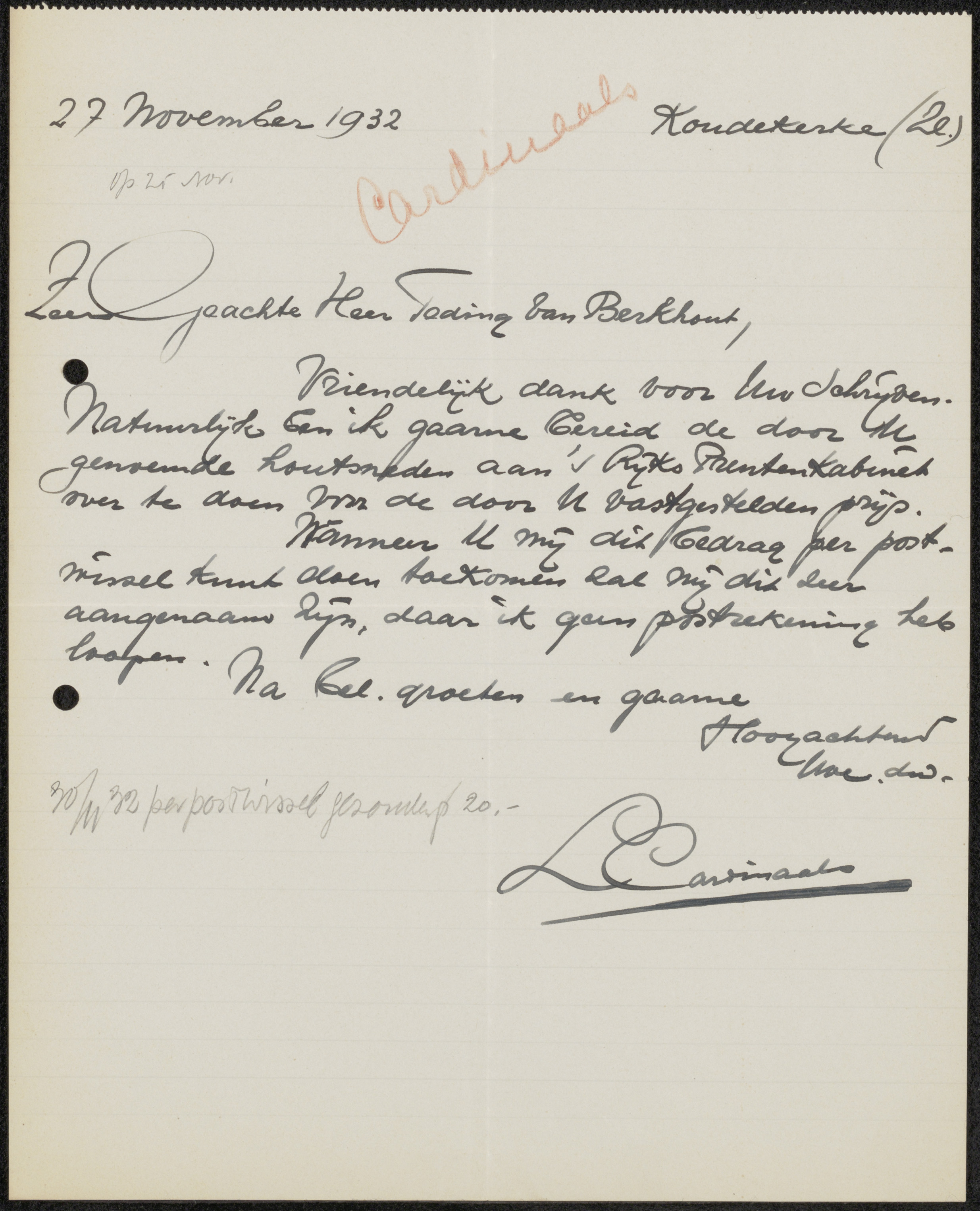 Brief aan jonkheer Hendrik Teding van Berkhout (1879...