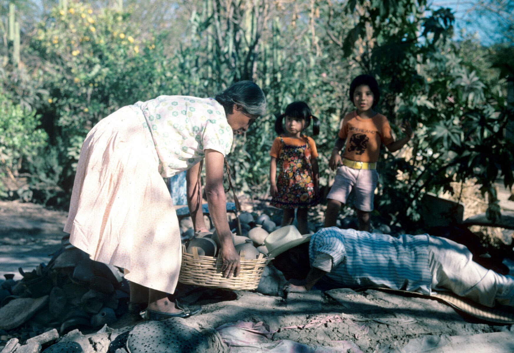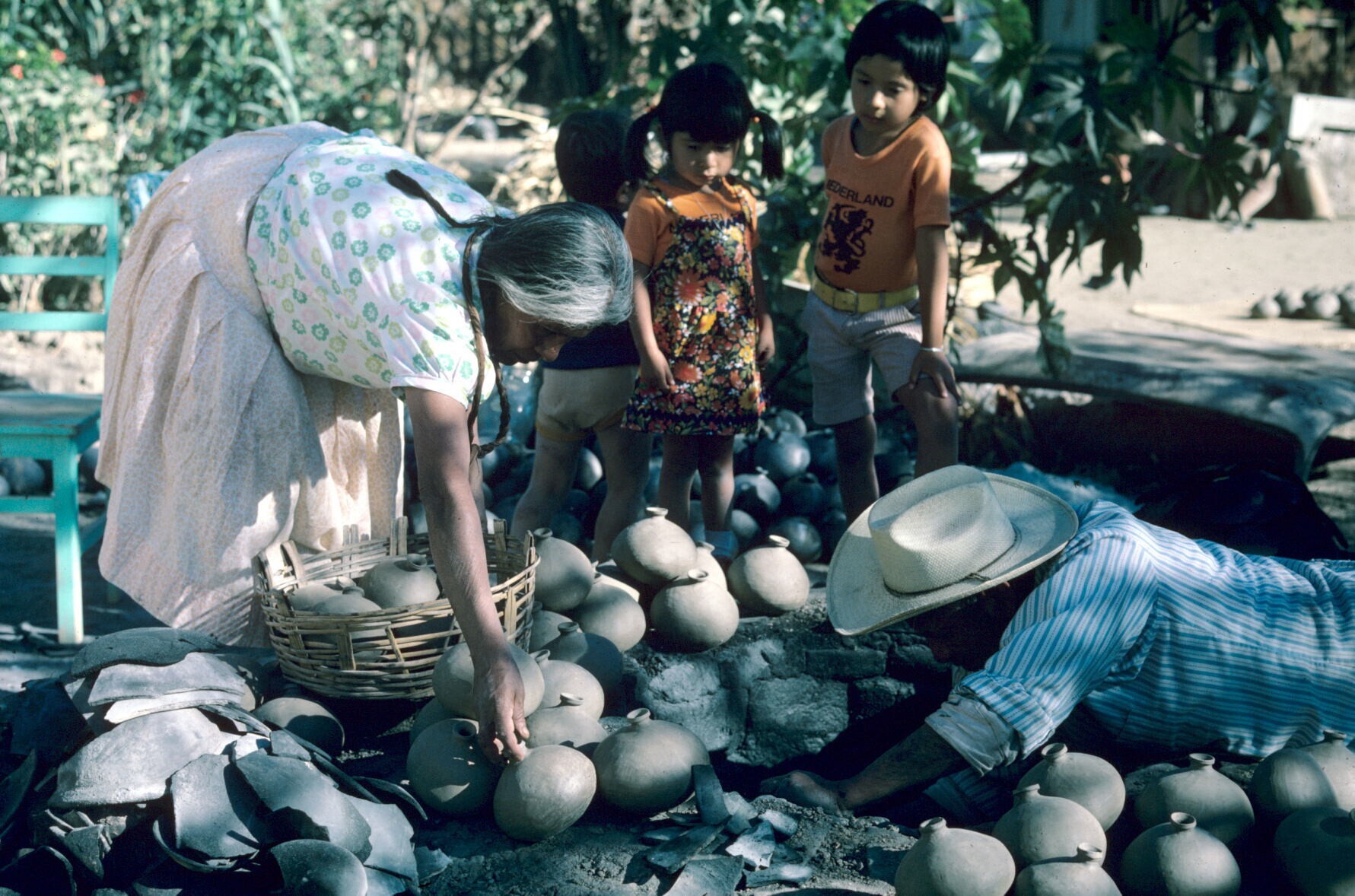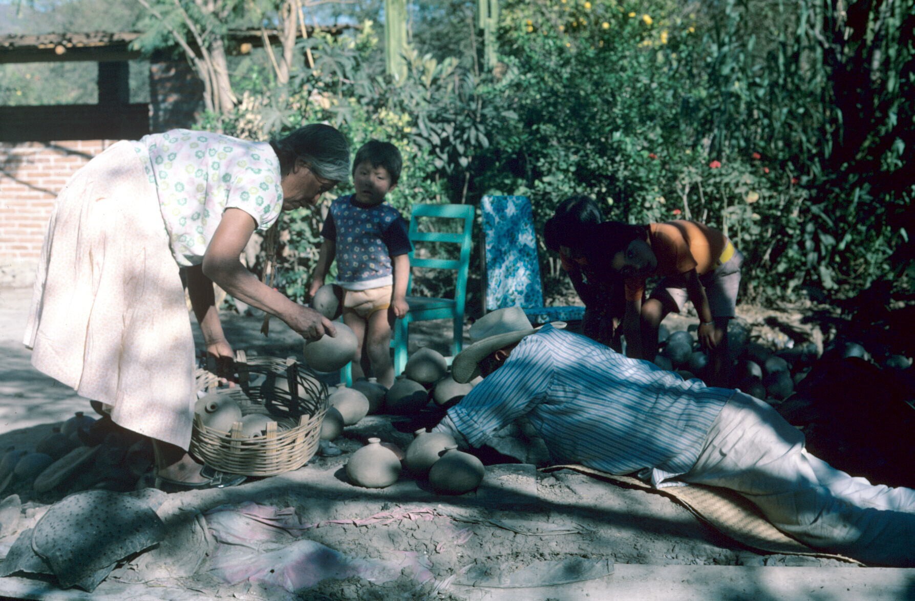 pottenbakster Juana Domínguez, met verwanten, op erf...
