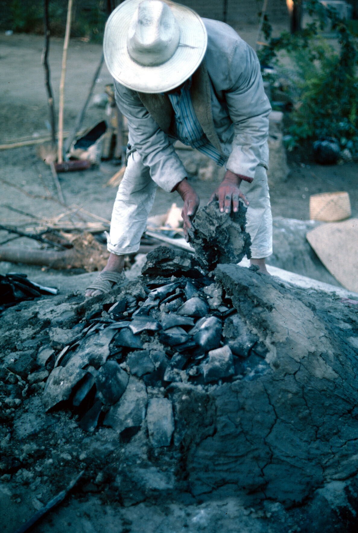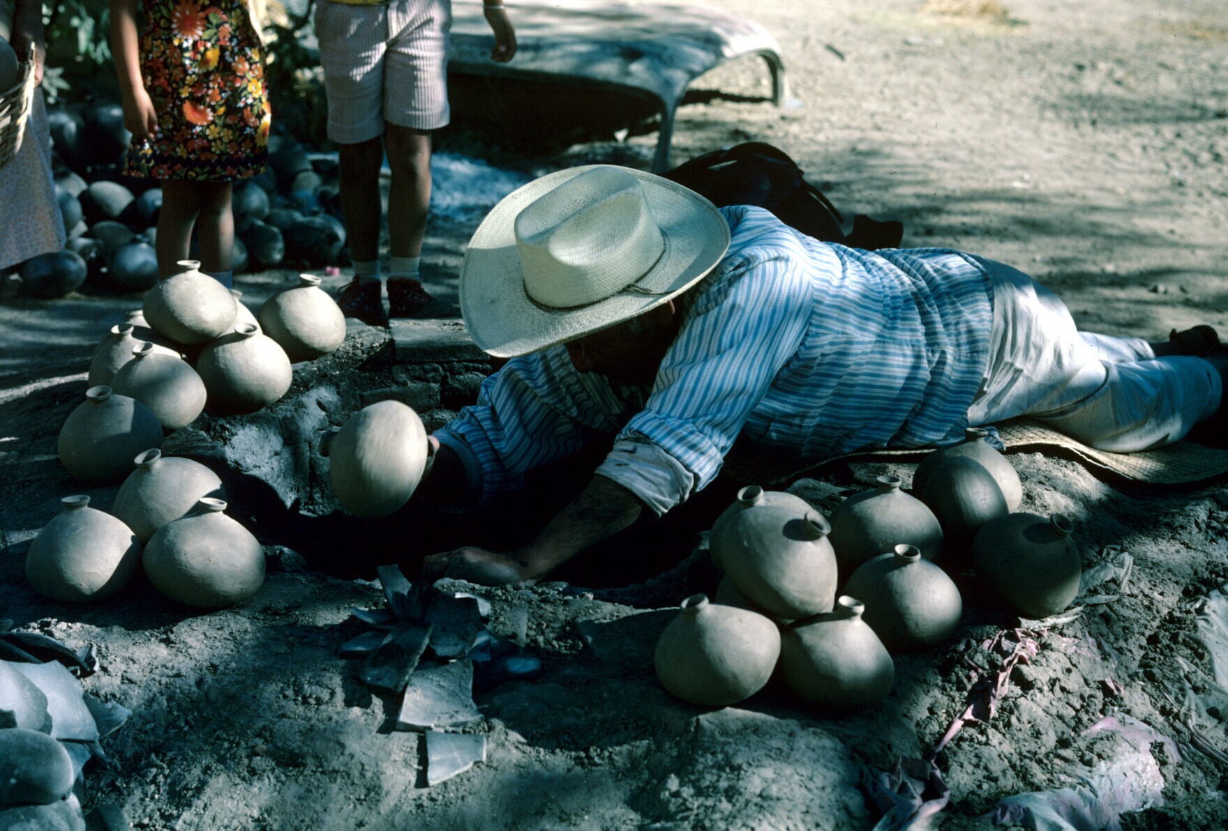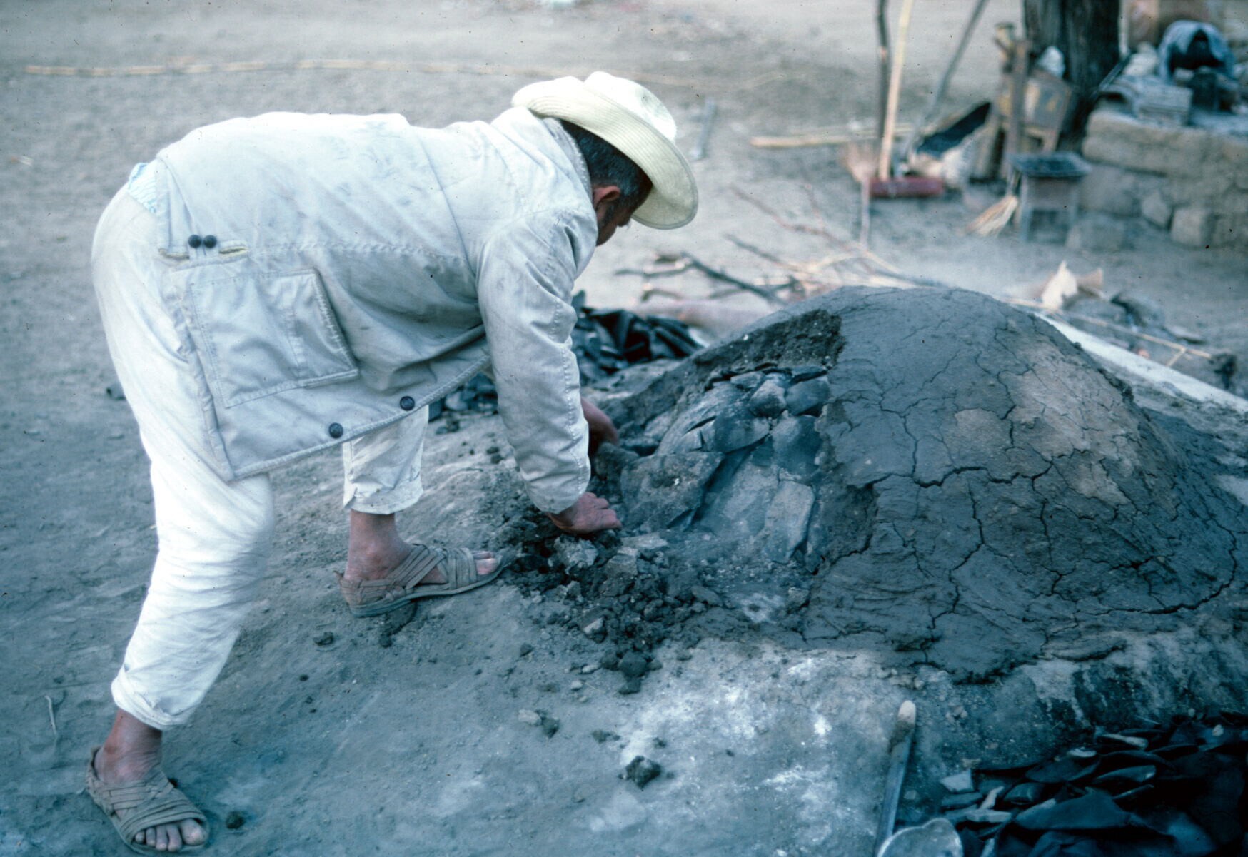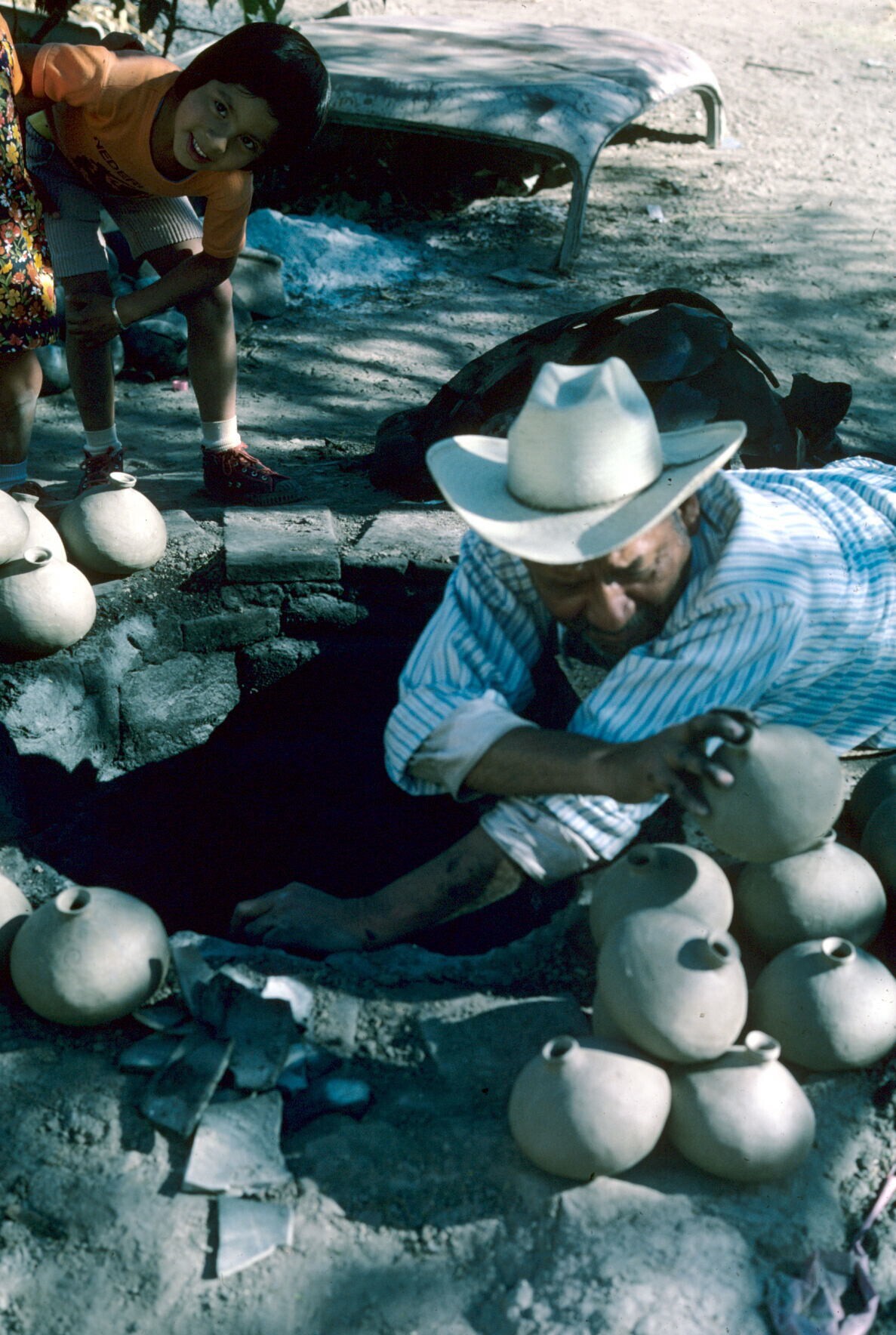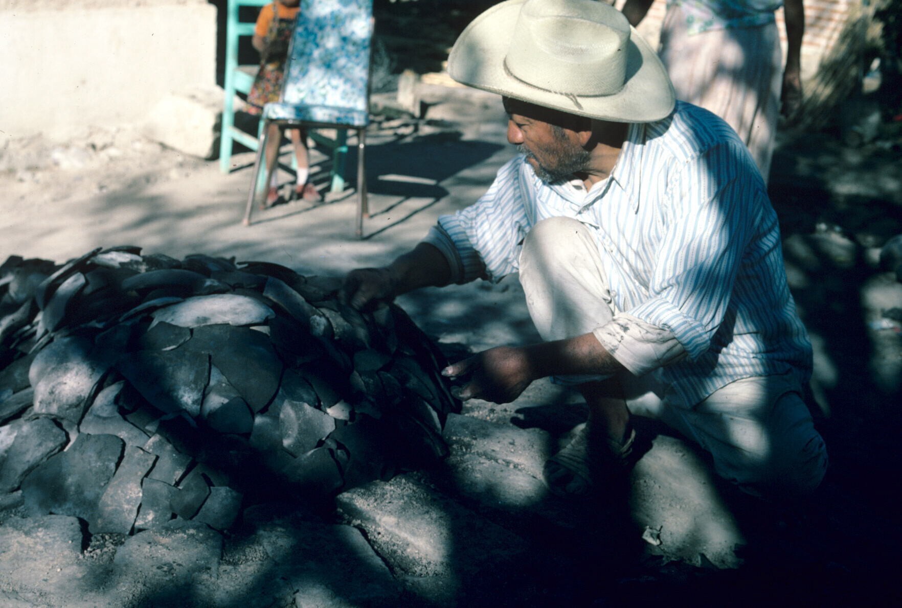 man van pottenbakster Juana Domínguez, vóór het bakk...