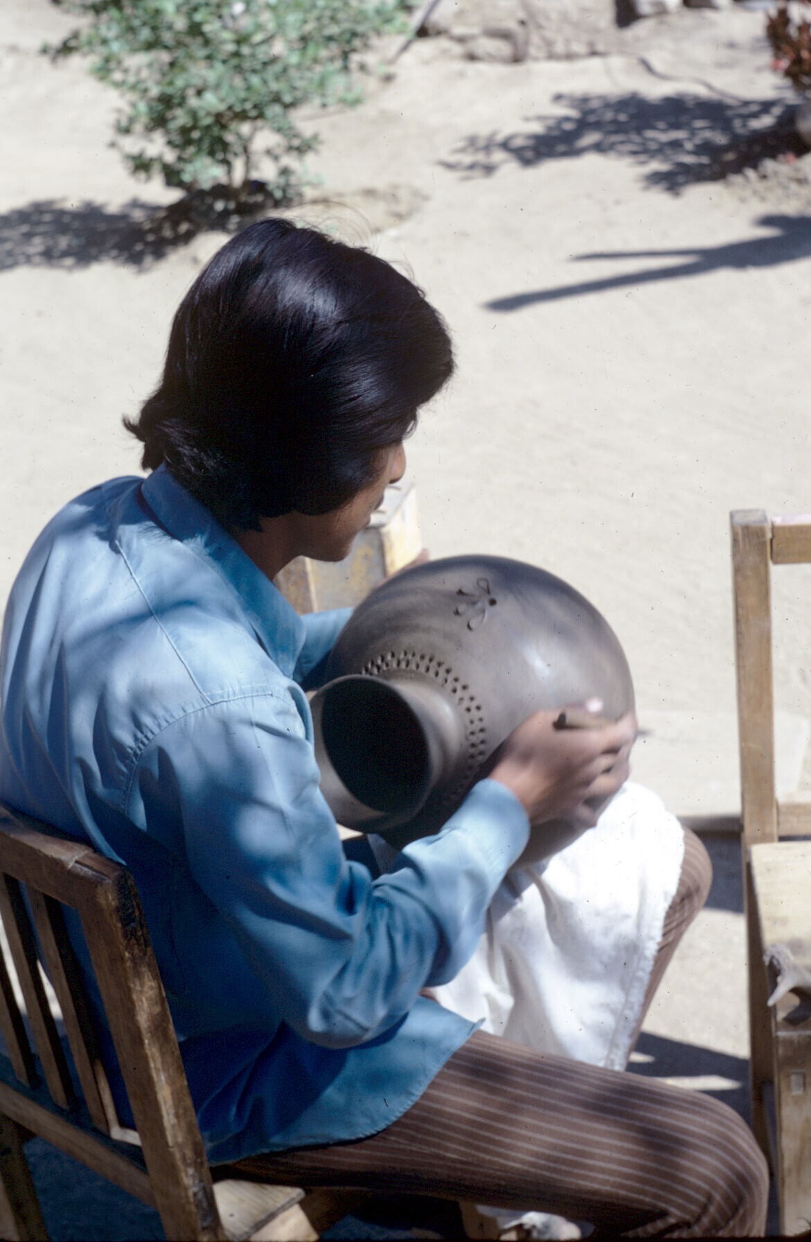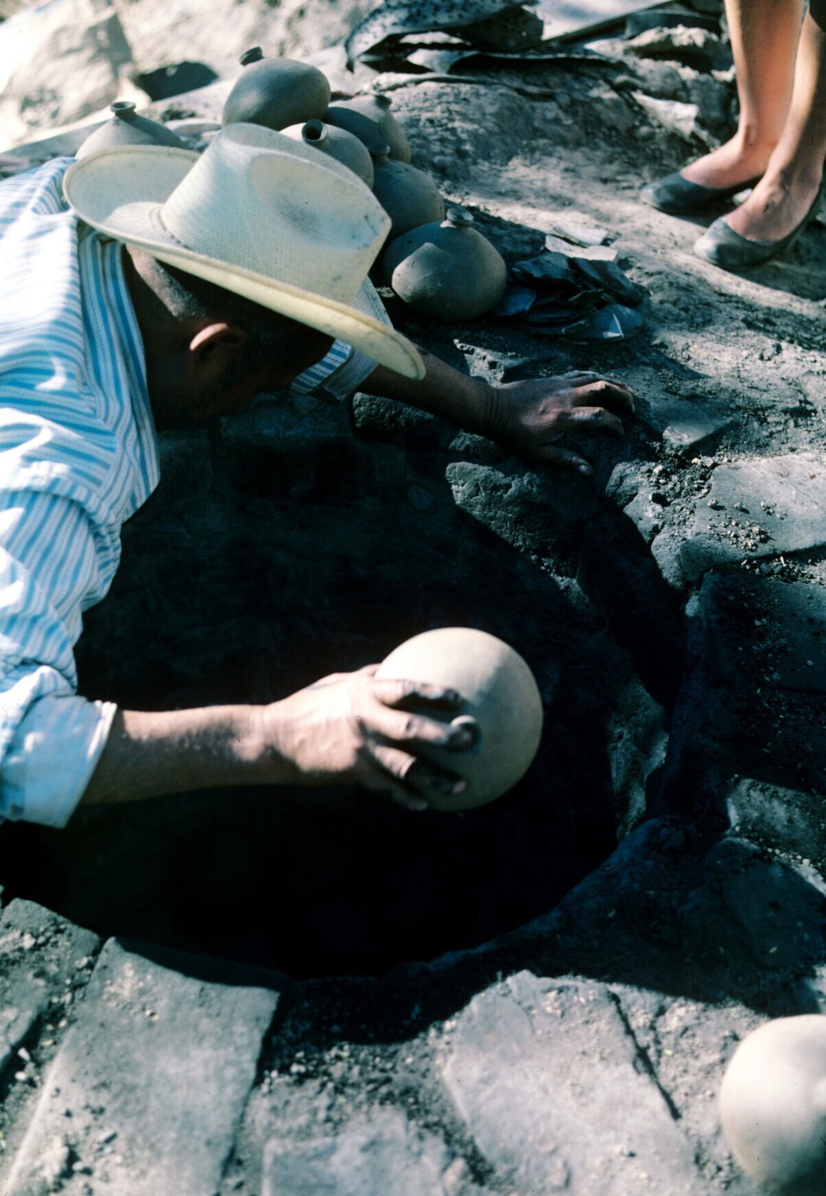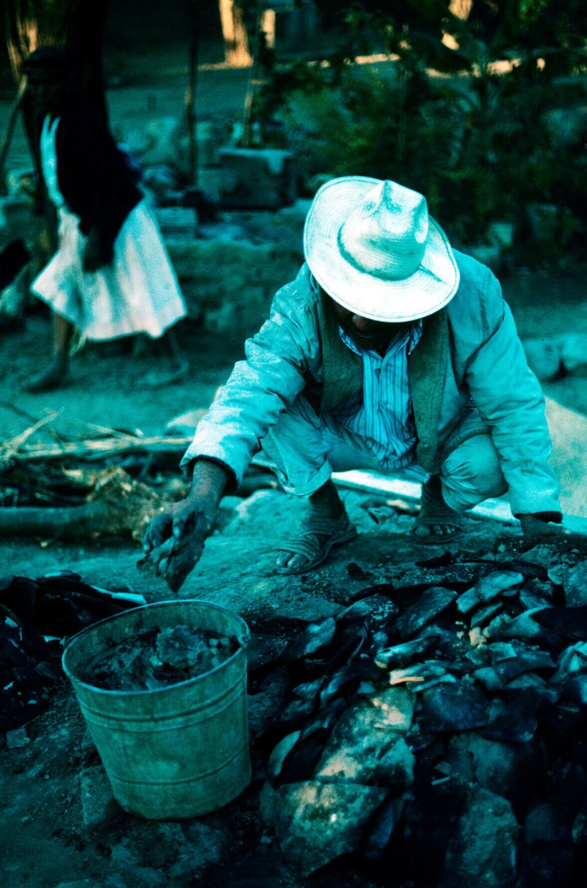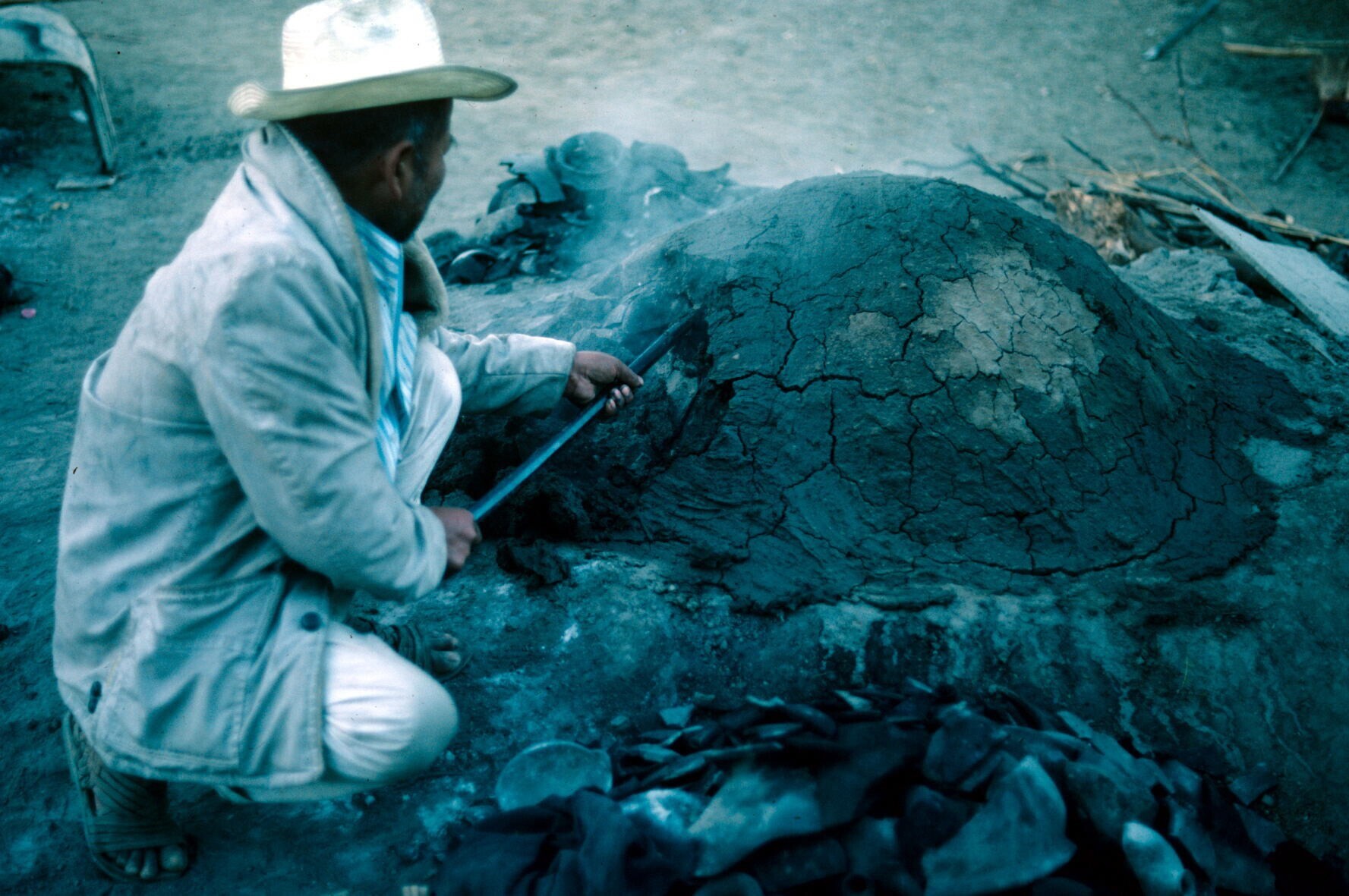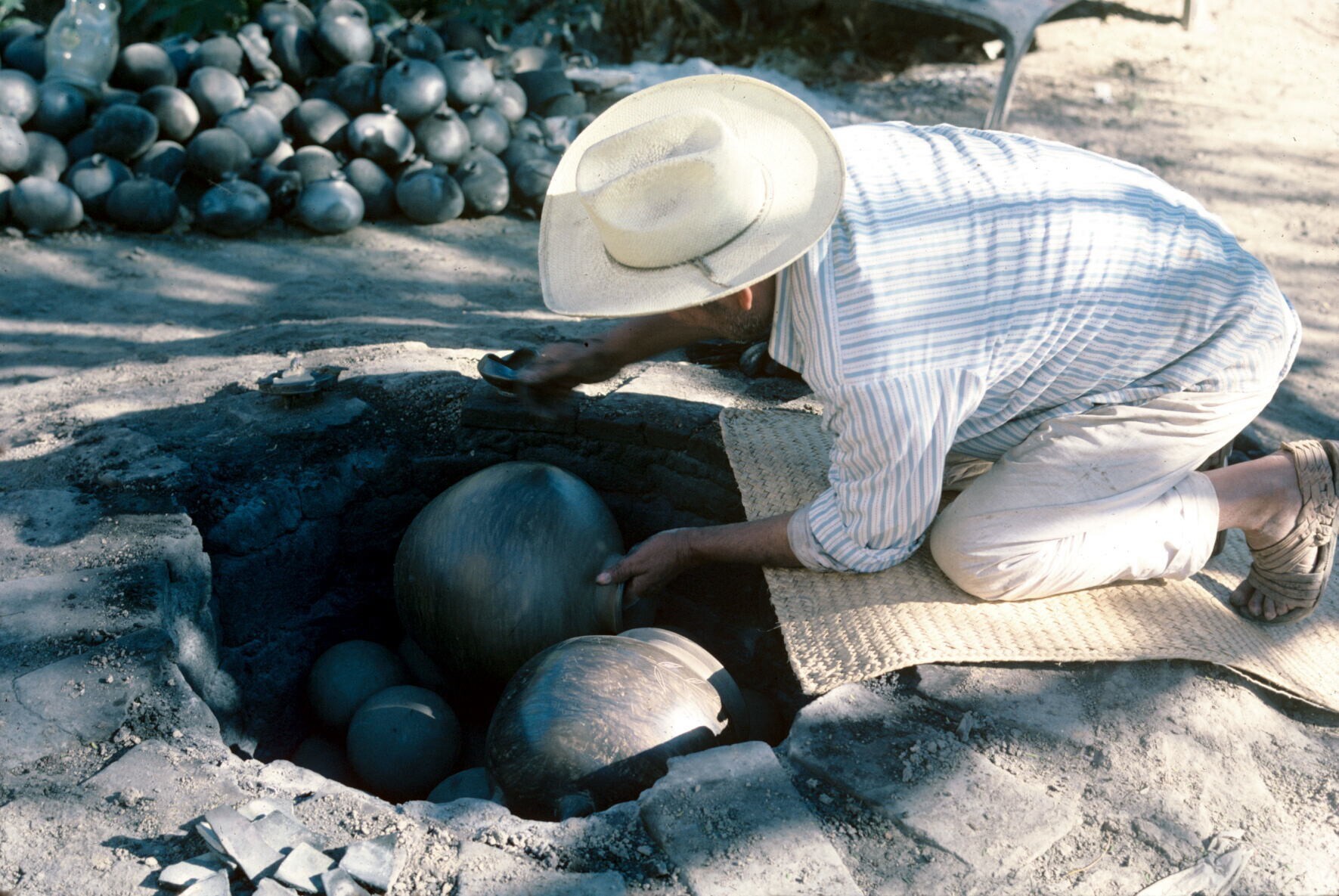 man van pottenbakster Juana Domínguez, vóór het bakk...