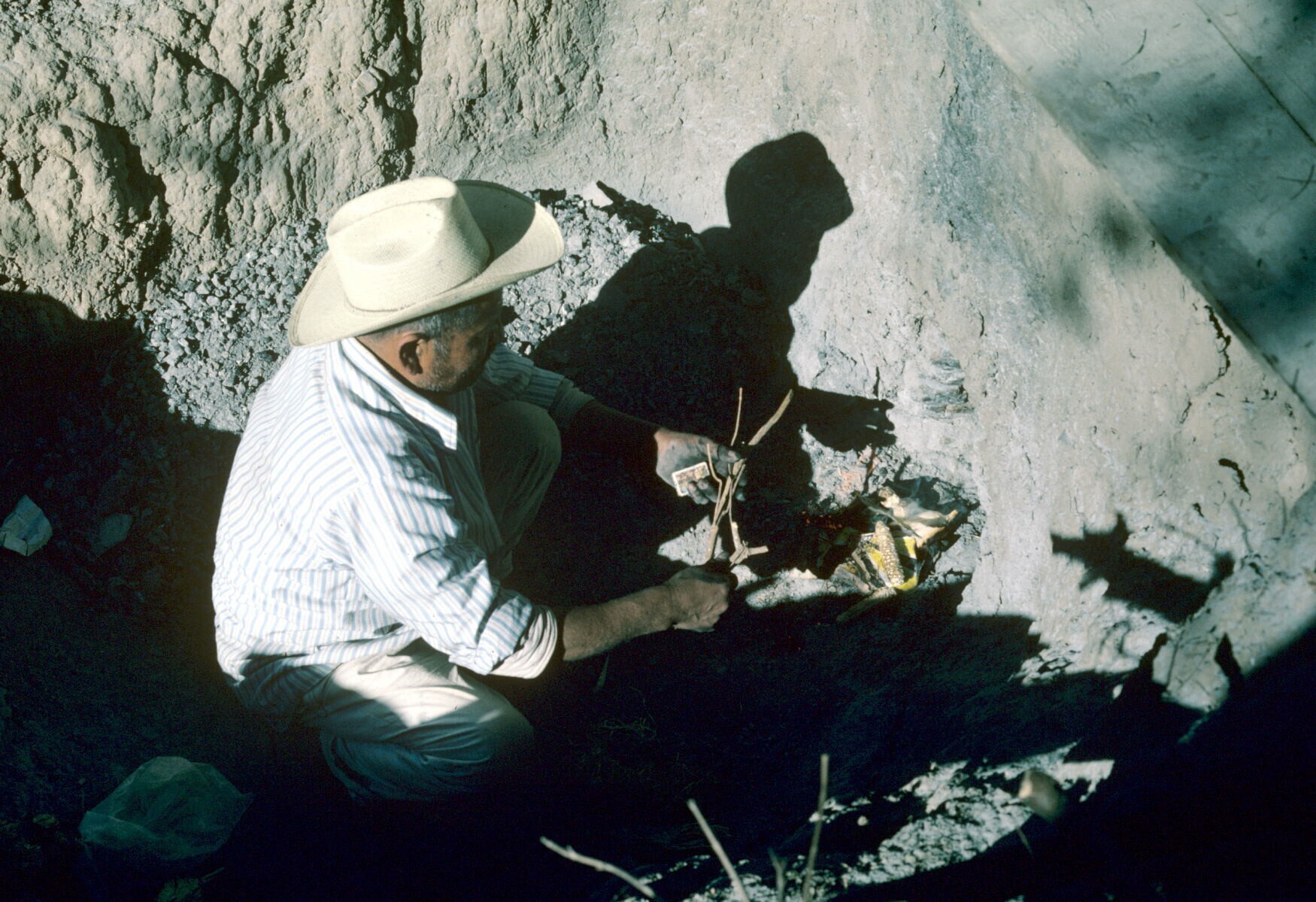 man van pottenbakster Juana Domínguez steekt vuur aa...
