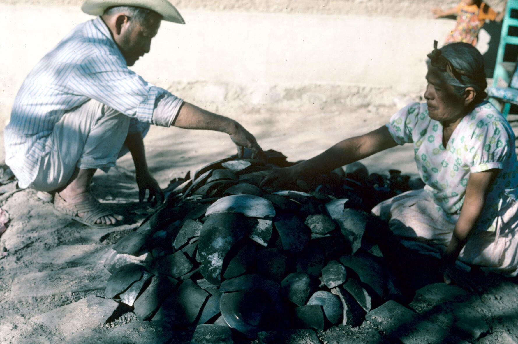 pottenbakster Juana Domínguez en man, vóór het bakke...