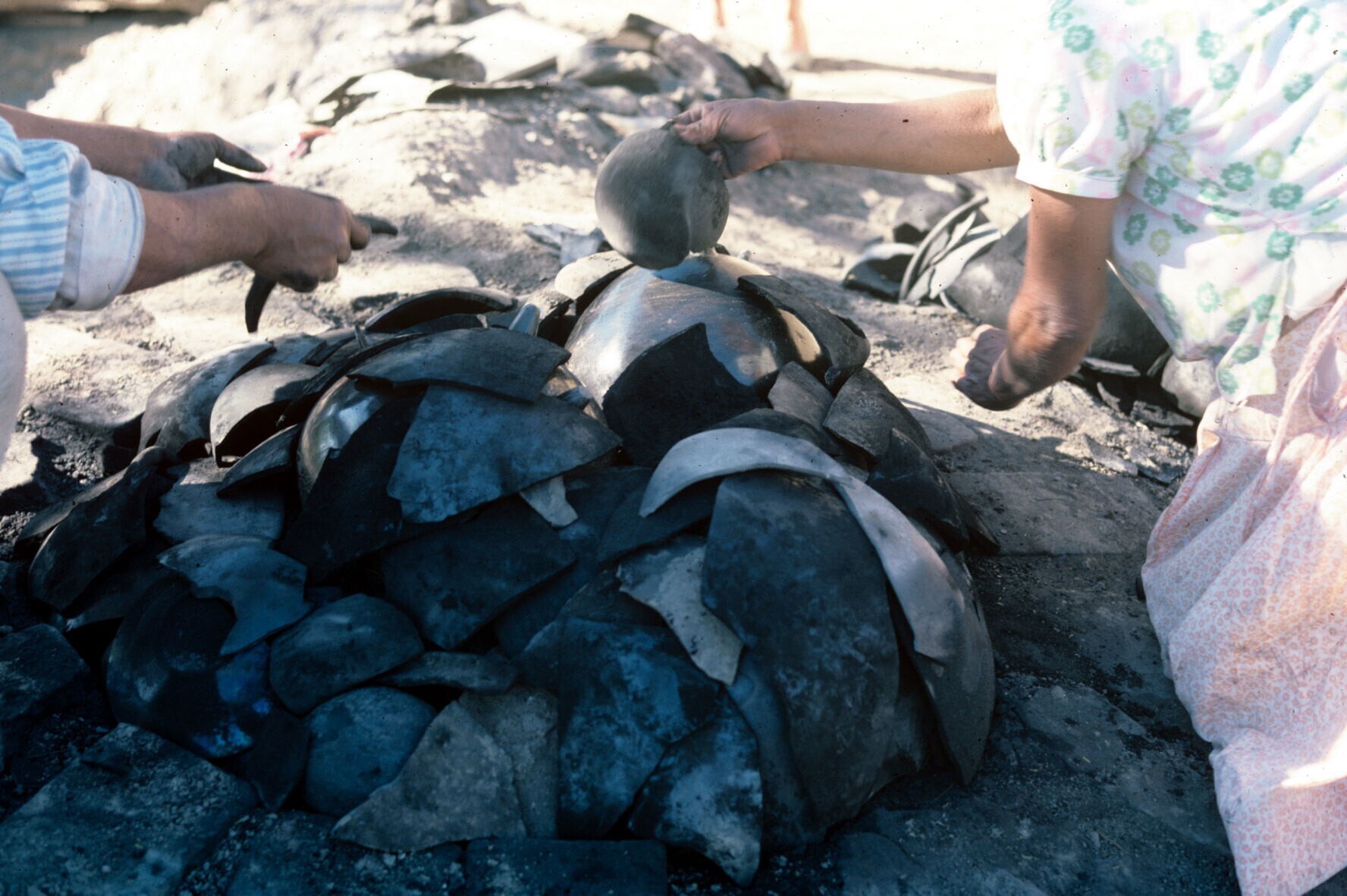 pottenbakster Juana Domínguez en man dekken vóór het...